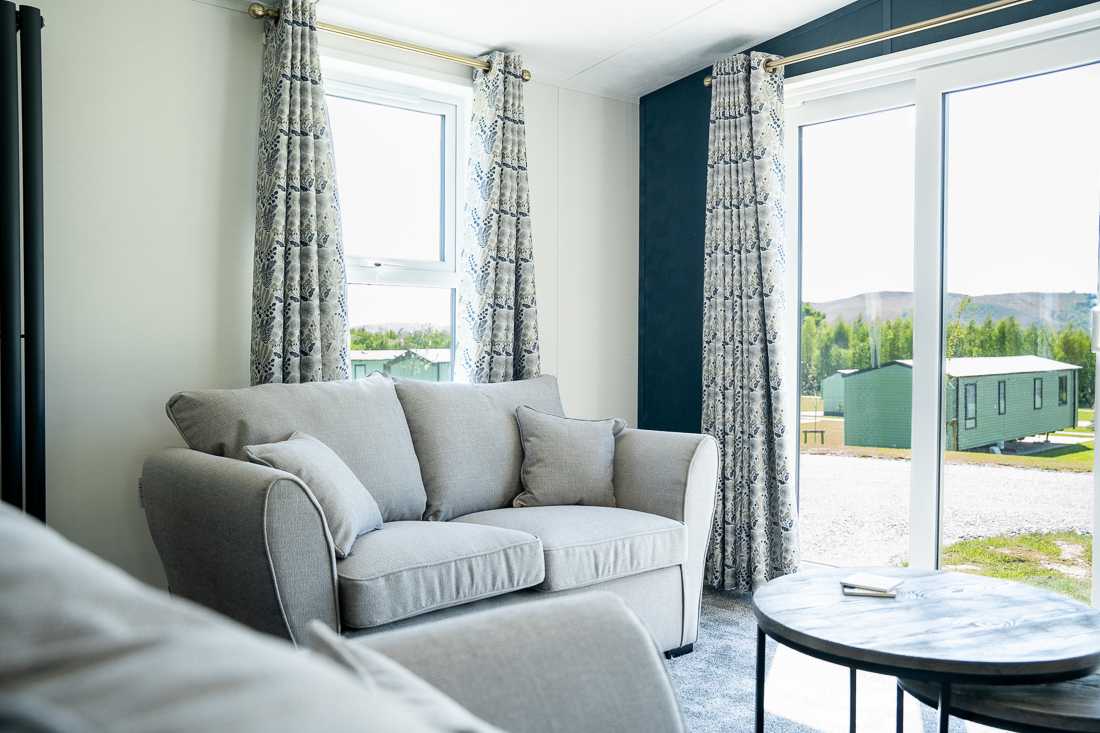 With a sophisticated blend of greys, oak finishes and navy blue feature walls, the Beverley Norwood strikes the perfect balance between neutral tones and stylish flair. Its thoughtfully designed interiors exude a sense of understated luxury, making it the perfect retreat for those who value quality and elegance. Upon entering the Norwood, guests are welcomed by a convenient bench seat equipped with coat hooks, ideal for removing shoes and storing outerwear. The open-plan living area features a well-appointed kitchen, complete with an integrated microwave, fridge/freezer, 4-burner gas hob, electric oven and grill, as well as ample storage space. This area is further enhanced by the inclusion of an integrated washing machine and dishwasher, ensuring convenience and efficiency. The dining area is furnished with a robust wooden table and comfortable seating for four, creating an inviting space for meals and gatherings. The lounge area is designed for relaxation, featuring two free-standing sofas, a nest of two coffee tables, and a striking backlit fireplace that fosters a warm and welcoming ambiance. The master bedroom is a sanctuary of comfort, boasting a king-sized bed, a walk-in wardrobe, a fitted wardrobe, and an en-suite shower room complete with a WC, hand basin, and practical integrated shelving. The spacious twin bedroom offers generous over-bed storage and a fitted wardrobe for added convenience. The family bathroom is thoughtfully designed, featuring a bath with an overhead shower, a WC, a hand basin with storage, and a heated towel rail, providing all the essential amenities for a comfortable stay.