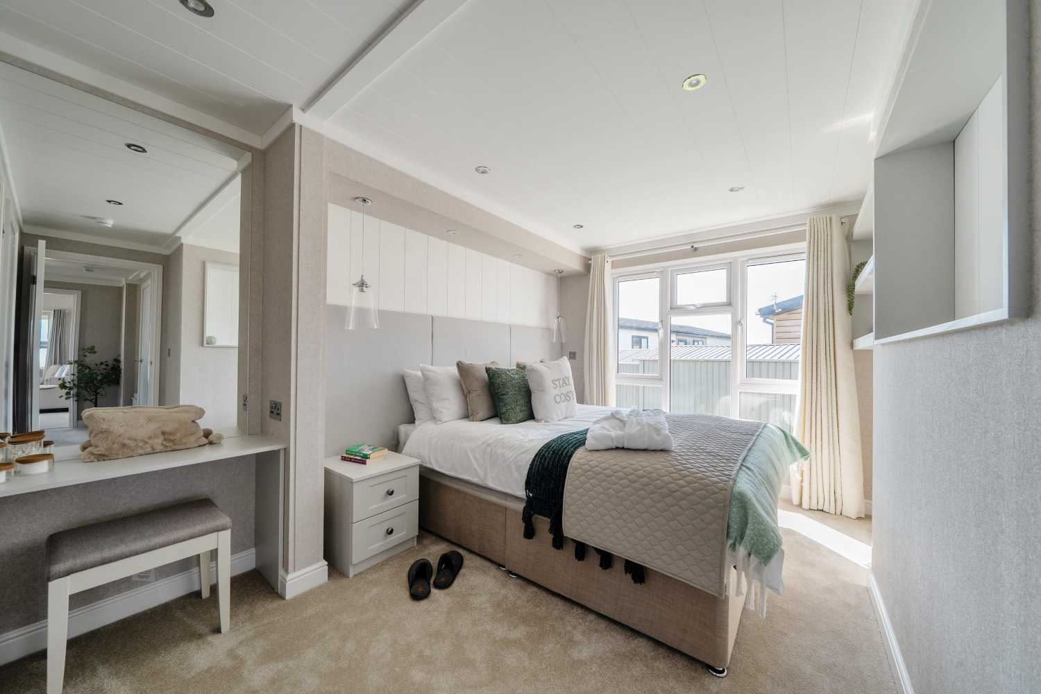 Located in the sought-after coastal village of Milford-on-Sea, the Anniversary Park Bungalow offers a beautifully balanced lifestyle of tranquillity, comfort, and community. With 800 sq ft of thoughtfully designed living space, this award-winning two-bedroom, two-bathroom home is perfect for those seeking style and serenity by the sea. From the moment you arrive, the bungalow’s distinctive exterior impresses – boxed-out windows, contemporary cladding, and a stylish roof dormer over the recessed entrance create a warm and welcoming feel. Inside, the heart of the home is the sunroom, bathed in natural light and seamlessly connected to the dining area – ideal for relaxing mornings or entertaining evenings. The spacious lounge offers another inviting space to unwind or connect with loved ones, all set against a backdrop of elegant interior design. The primary bedroom is a calming retreat, while the second double bedroom is perfect for guests or family. Two beautifully finished bathrooms, including a tranquil main bathroom, add to the sense of luxury and ease. Built to BS 3632 residential specification, the Anniversary Park Bungalow is designed for year-round comfort, with energy-efficient features and durable construction. Set within the vibrant Solent Grange community, you’ll enjoy a peaceful setting with easy access to local events, cultural attractions, and stunning coastal walks. It’s a place where neighbours become friends and every day feels enriching.
