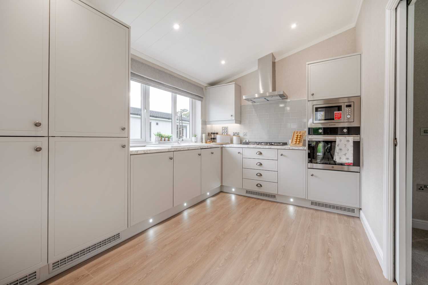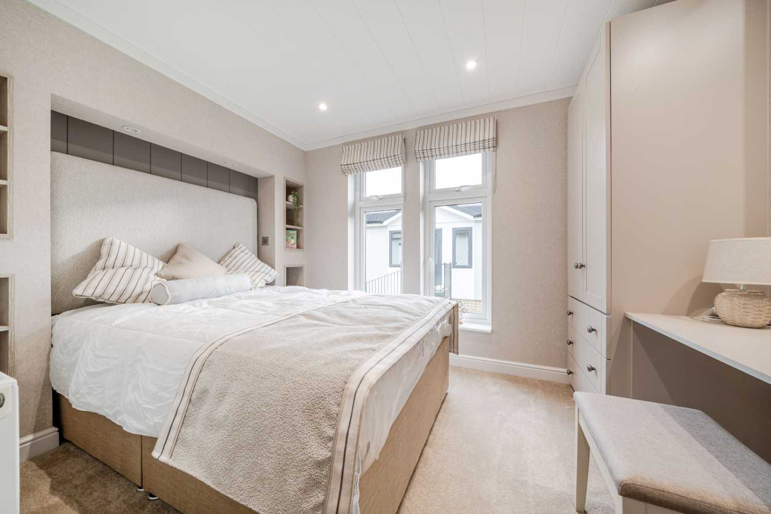 The Anniversary Park Bungalow offers 840 sq ft of thoughtfully designed living space in the scenic Thetford Forest. This award-winning home blends comfort, elegance, and innovation, creating a peaceful yet vibrant lifestyle. Its charming exterior, with boxed-out windows and a stylish dormer, sets the tone for the inviting interior. A sun-filled sunroom connects seamlessly to the dining area - ideal for relaxing or entertaining. The spacious lounge and sophisticated décor enhance the sense of home. The primary bedroom is a tranquil retreat, with a second double bedroom and two stylish bathrooms completing the layout. Built to BS 3632 residential standards, the home is durable and energy-efficient. Located in the welcoming Forest Edge Court community, it offers a perfect mix of nature, culture, and connection. Experience the charm of the Anniversary Park Bungalow - contact our team and begin your next chapter.