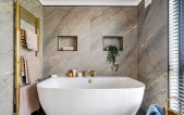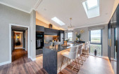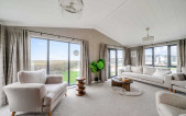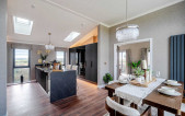Experience cutting-edge design and elevated living with The Horizon — a park home that blends striking architectural features with refined comfort. Offering approximately 1100 sq ft of beautifully crafted living space, this ultra-modern home is a bold statement in sophistication, designed for those who appreciate detail, innovation, and timeless quality. From the moment you arrive, The Horizon commands attention with its symmetrical lines, sleek stucco exterior, and feature cladding panels. The focal point of the façade is a spectacular glazed central atrium, which sets the tone for the light-filled interiors beyond. Inside, the heart of the home is a semi-open-plan living area, where a vaulted ceiling and expansive picture windows create an airy, sunlit space perfect for both relaxation and entertaining. The lounge is refined yet welcoming, featuring elegant sofas, a bespoke media wall, and French doors that open to the outdoors, seamlessly blending indoor and alfresco living. The kitchen and dining area is a true centrepiece with Silestone worktops, designer cabinetry, and high-spec integrated Bosch appliances including a wine cooler, boiling water tap, and warming drawer. A large breakfast bar with upholstered stools makes everyday living effortless, while the striking glass chandelier over the dining table adds a dramatic touch of elegance. The master suite offers a sanctuary of calm with a feature wall, king-size bed, and generous walk-in dressing area complete with shelving, wardrobe space, and shoe racks. The en-suite bathroom is finished to a premium standard, with his and hers basins, a walk-in shower and drench shower head. The second bedroom mirrors the high design standard with integrated storage and stylish furnishings. A family bathroom completes the home, with a sculptural freestanding bath, ambient lighting, and sleek contemporary finishes. Constructed to the BS 3632 residential standard and protected by a 10-year GoldShield warranty, The Horizon offers long-lasting peace of mind. A pitched tiled roof with a 50-year guarantee and uPVC double glazing add durability and energy efficiency to this beautifully designed home. Located in the welcoming community of Solent Grange, this bungalow offers more than just a place to live. It’s a lifestyle. Enjoy the vibrant social scene, local events, and leisure opportunities, all within a thriving neighbourhood close to the stunning Hampshire coastline.