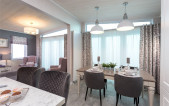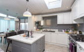 The Glendale Lodge exudes an aura of pure luxury and sophistication. As you step into the living area, an immediate sense of expansiveness welcomes you, with ample plush seating, a storage footstool, and tastefully nested tables seamlessly filling the open-plan lounge. This leads you gracefully into the spacious kitchen, featuring a grand kitchen island adorned with plush barstools, and boasting a comprehensive set of high-quality specifications, including a range cooker.