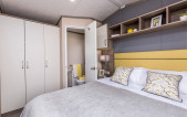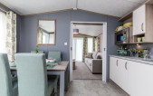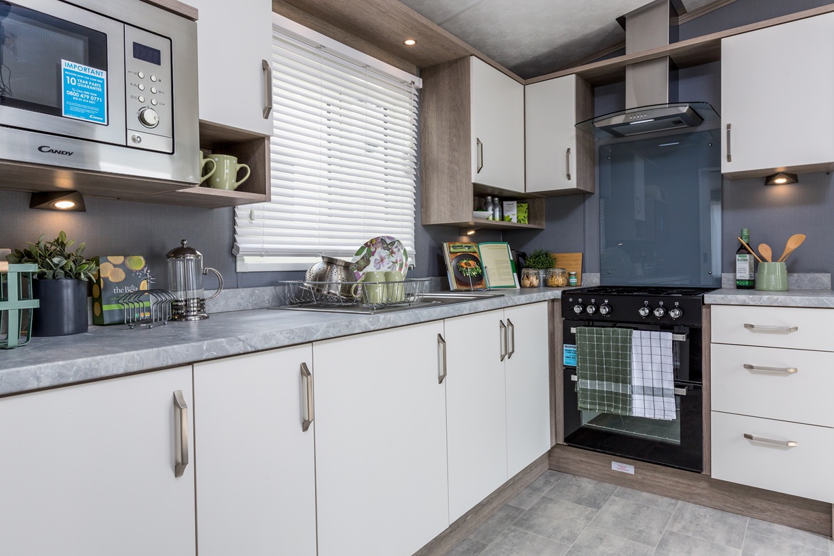 The Regent boasts a rare concept in a 12 ft home and that is the ability to close off the lounge from the kitchen and dining area. Optional pocket doors are smartly encased behind the lounge shelving unit which provides lots of space for books and photos. The large sofa contrasts well with the luxurious accent chair – one in the 36ft and two in the 38ft home – and the fabrics invoke an atmosphere of calm and serenity.