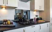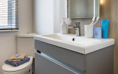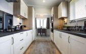 The Kingsdale is Pemberton’s flagship park home and is popular with an optional appealing Canexel and Stucco exterior, bay windows in a choice of 4 different colours and dual entrances with an open sight line from the hallway to the utility area. This home has been designed to free flow from one room to another but with the option to have a closed off lounge and a door from the hallway to the kitchen/utility. With a eye-catching mirrored splashback to the utility the large work surface is perfect for mixing cocktails for your guests. Both bedrooms have king size beds and stunning wardrobes complete with internal drawers and there is a walk through vanity area linking the en-suite to the master bedroom. Colours are elegantly neutral throughout, with a pop of burgundy in the lounge, and calming blue to the bedrooms.