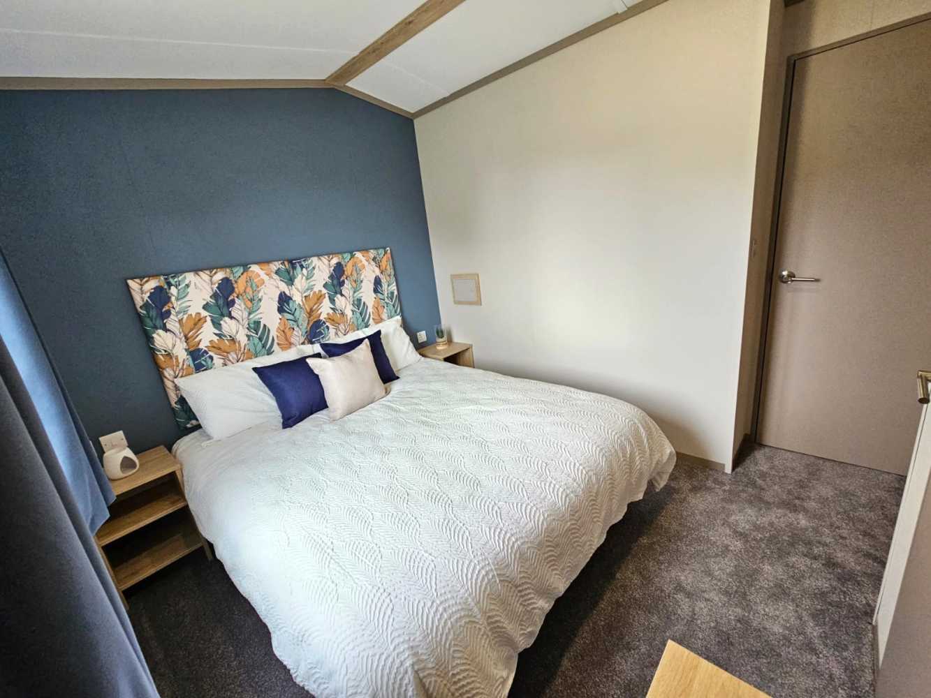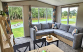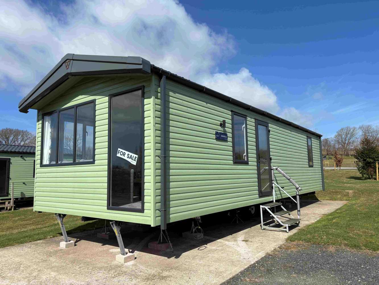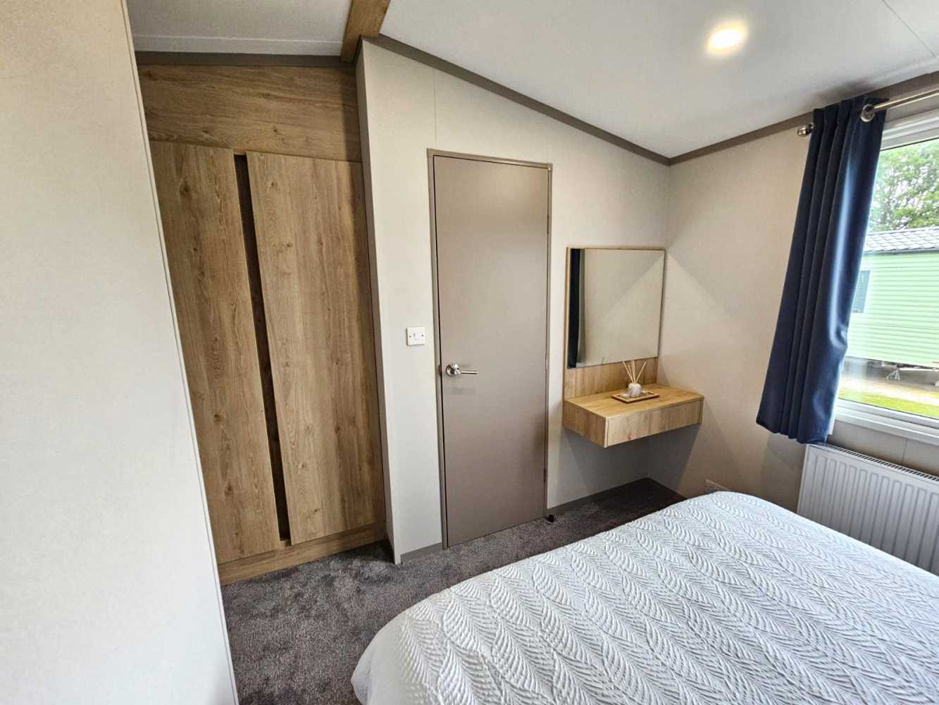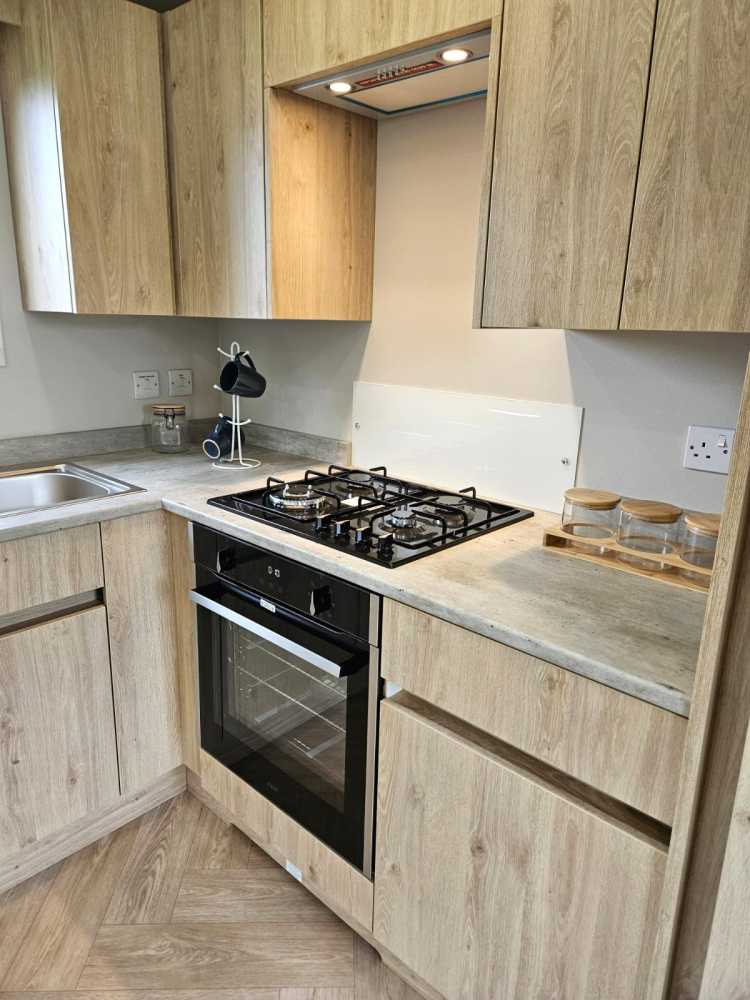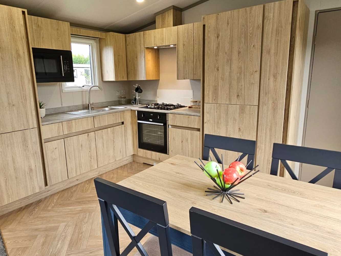The Victory Baywood is an ideal choice for families and first-time holiday home buyers looking to escape the everyday. The living room features a spacious L-shaped sofa, coffee table, and TV unit, all bathed in natural light from the large front windows. The kitchen is equipped with a 4-burner gas hob, gas oven/grill, integrated fridge/freezer, and microwave, all set on modern, easy-to-clean herringbone flooring. A free-standing dining table and chairs provide seating for four, perfect for family meals or entertaining guests. The master bedroom boasts a stylish patterned headboard, ample vanity unit with drawer and mirror, as well as an en-suite WC and hand basin for added convenience. The twin bedroom includes a fitted wardrobe and compact vanity unit with drawer and mirror, ensuring plenty of storage space for guests. For additional sleeping arrangements, an air bed with an electric pump is available to accommodate extra guests comfortably. The bathroom is bright and airy, featuring a shower, WC, and hand basin, providing all the necessary amenities for a relaxing stay. Overall, the Victory Baywood offers a comfortable and stylish retreat for those seeking a peaceful holiday home getaway.