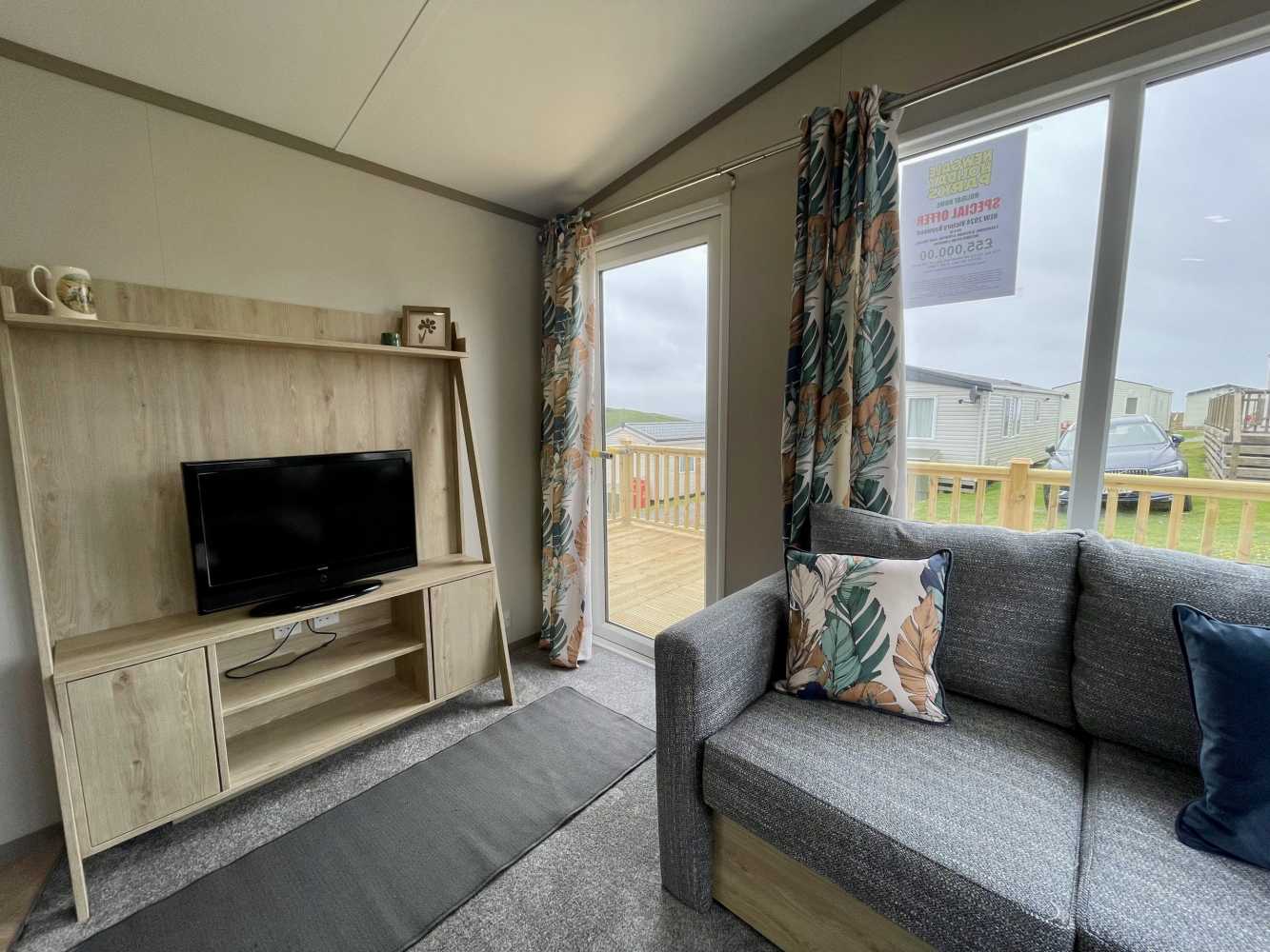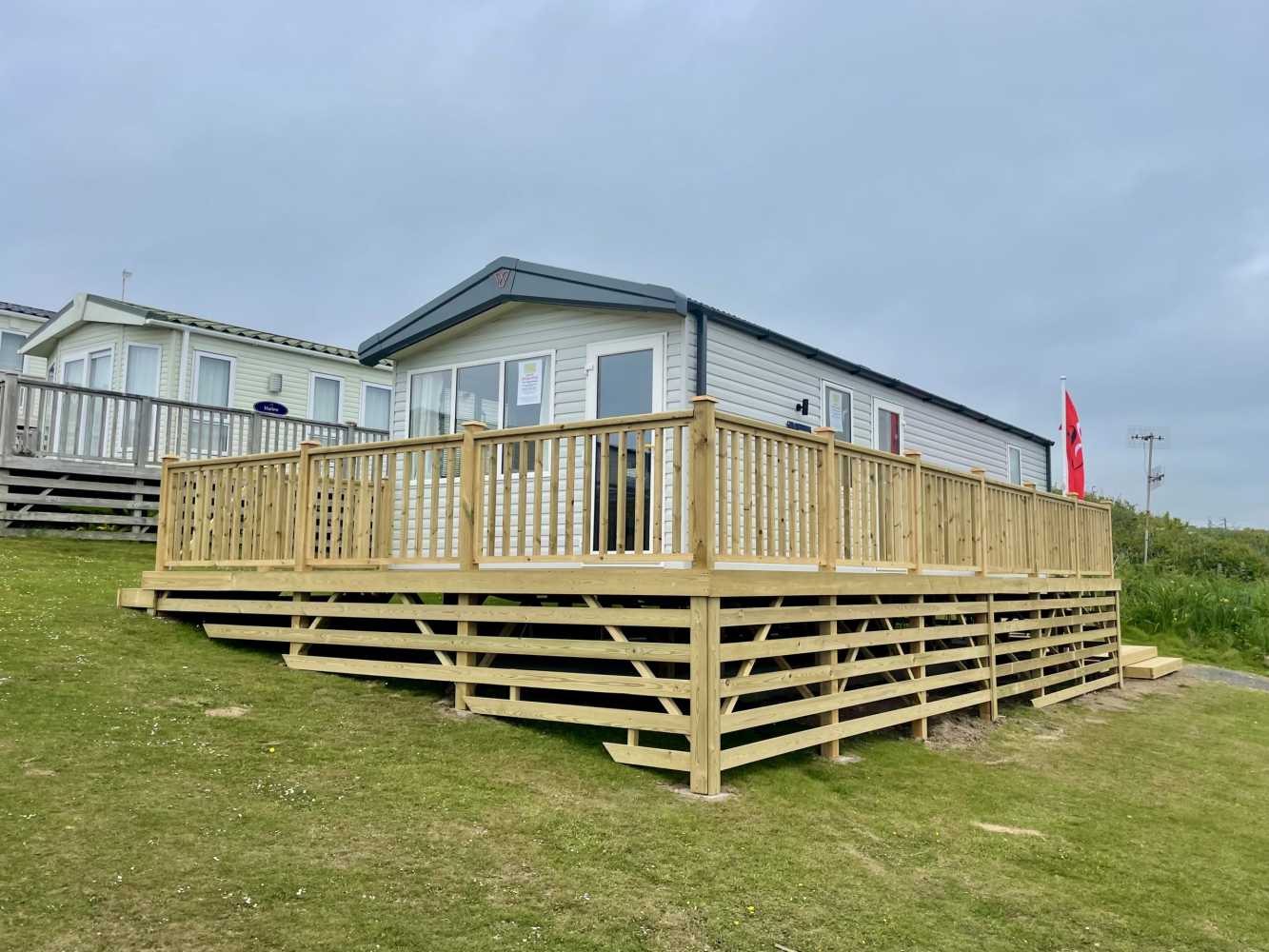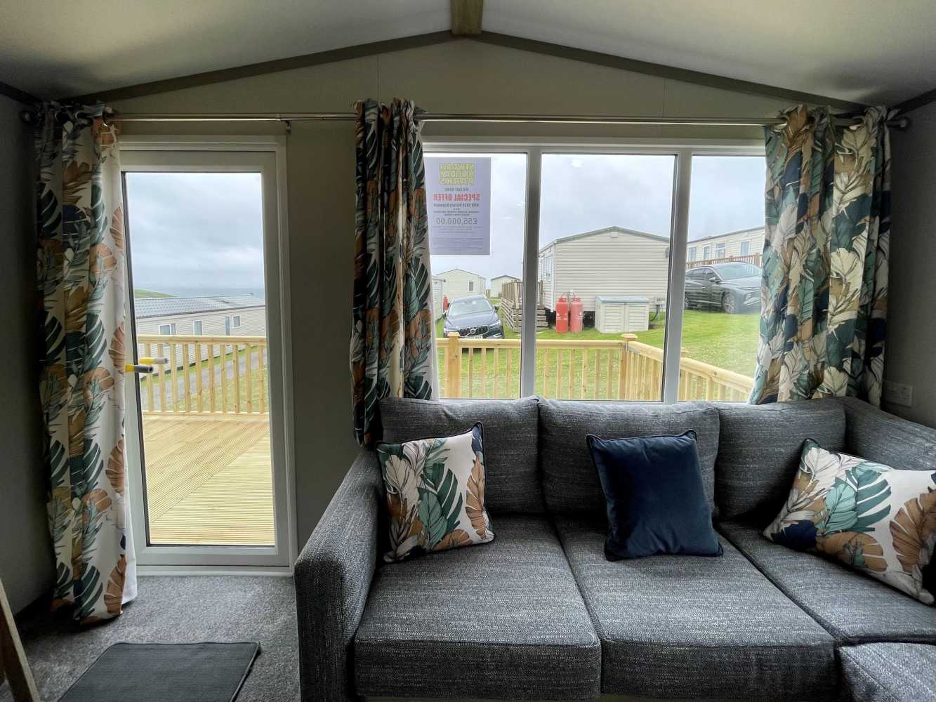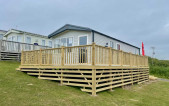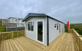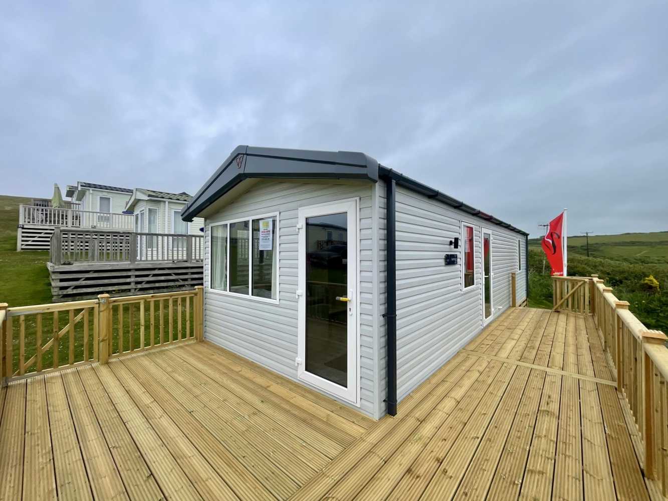 This brand new Victory Baywood is for sale on Plot 26 at Newgale Coast Holiday Park. Quite literally a stones throw away from one of Pembrokeshire’s most loved locations, Newgale Beach. The Baywood is a cozy and inviting base for exploring the beautiful Pembrokeshire Coast and also a great hideaway for those weekends you just need to escape from the everyday routine and staycation in style. Our favourite features... - The spacious living space is perfect for unwinding and making memories with the family. The vibrant tropical fabrics combined with navy and rust hues add a warming Scandi vibe whilst also being hardwearing, so you don’t have to worry about the kid’s sticky hands or dog’s muddy paws. You can simply sit back, switch off and enjoy your holiday home. - The kitchen lends itself to busy family mealtimes, with plenty of worktop space to whip up a full English or a brunchtime snack. The modern herringbone flooring is easy to clean and included is a fridge/freezer and a dining table that fits the whole family. - The bathroom offers plenty of natural light and the concrete-effect wet wall is bang on trend so you can shower in style. Privacy is maintained with the venetian blind and the same great styling is carried through into the ensuite. So after a long day at the beach, you can wash away the sand in between your toes and settle down for a cosy night in. - The tropical vibes carry on into the bedrooms with matching floral fabric headboards. The master bedroom includes an ensuite and plenty of wardrobe storage. The second twin bedroom is extra roomy and also includes great storage. - We’ve had a brand new hardwood decking built on Plot 26 to make the most of its stunning sea views. Easily step out onto the front decking from the living room door to watch unlimited sunsets over Newgale Beach. – You wont ever get bored of them!