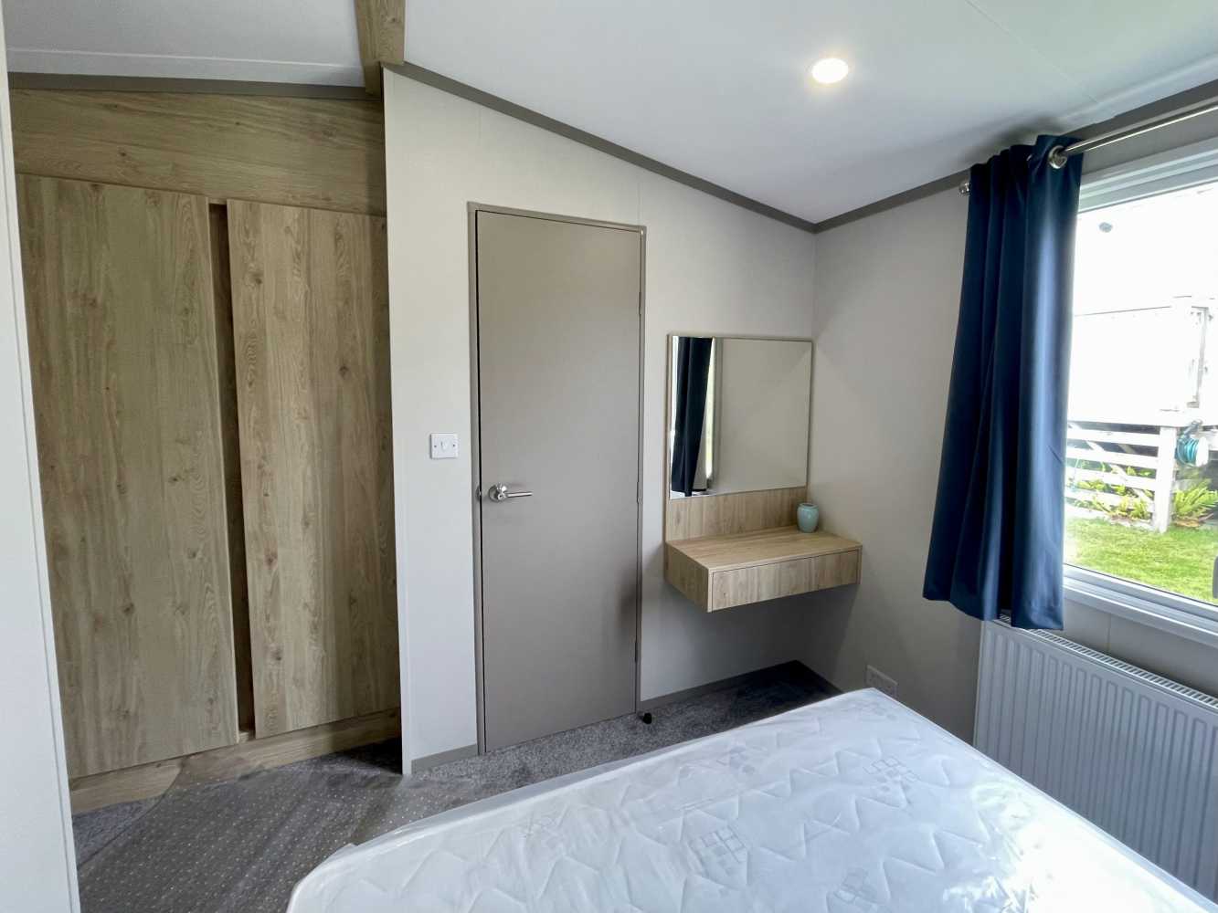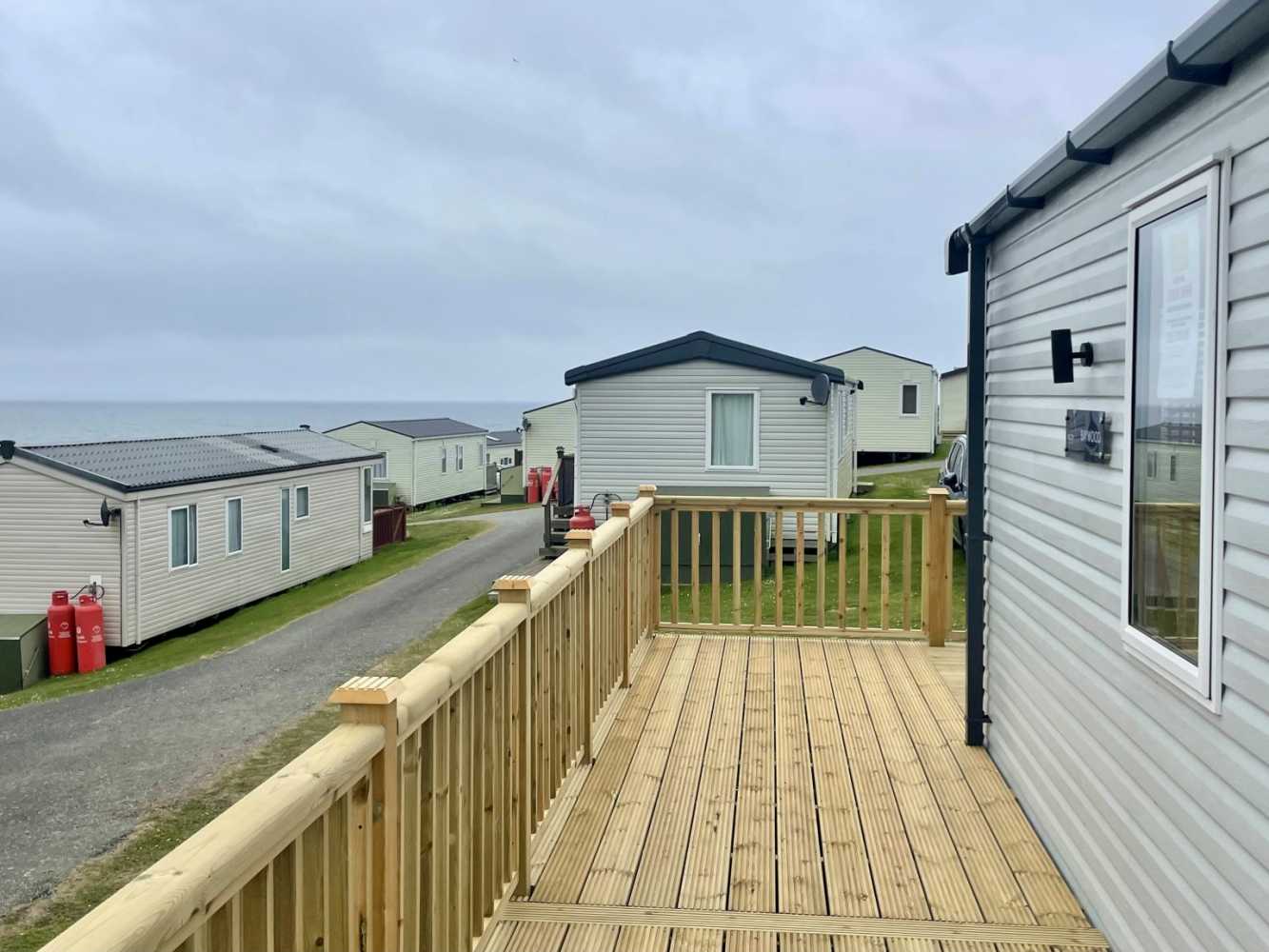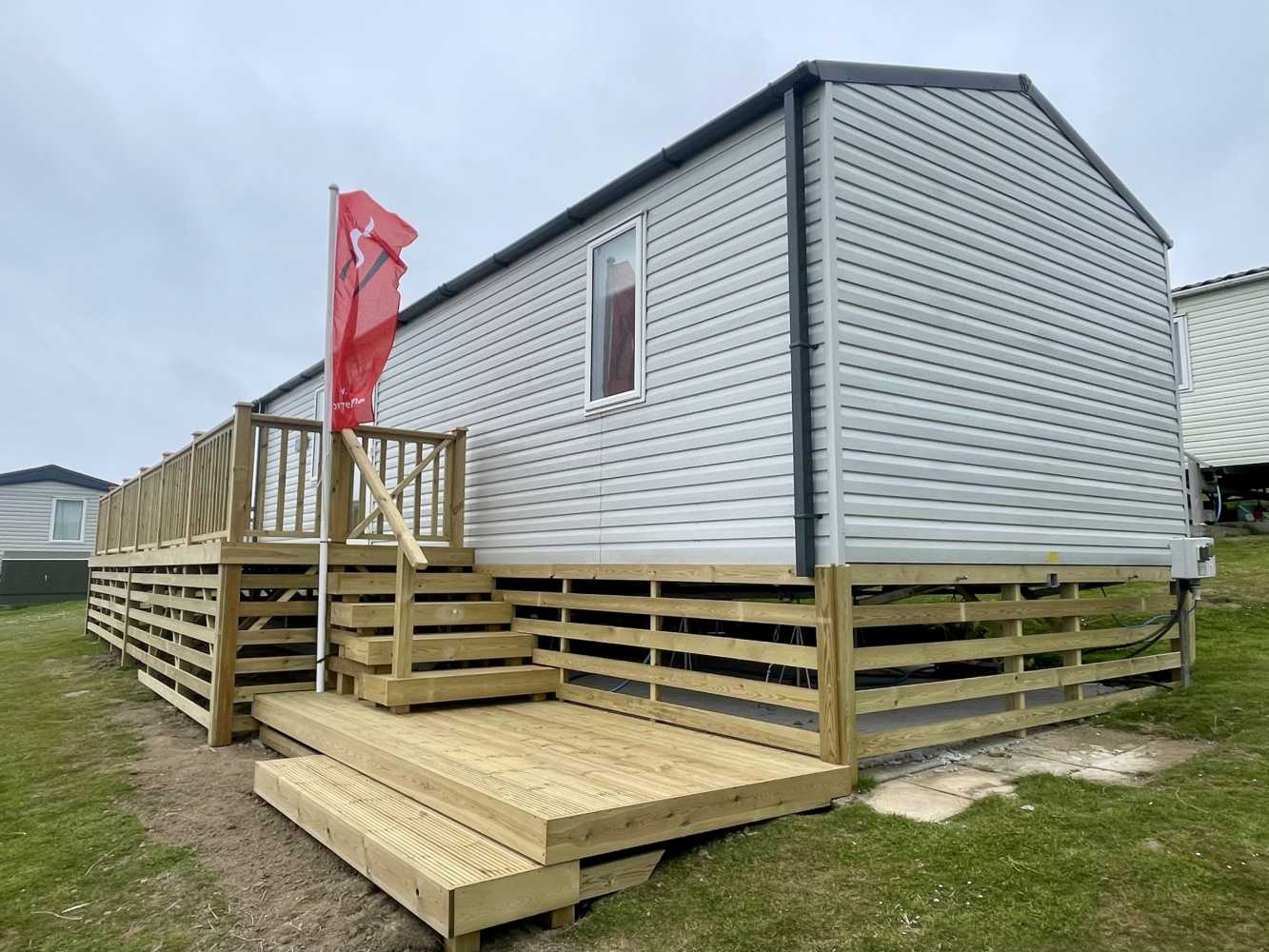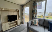 This brand new Victory Baywood is for sale on Plot 26 at Newgale Coast Holiday Park. Quite literally a stones throw away from one of Pembrokeshire’s most loved locations, Newgale Beach. The Baywood is a cozy and inviting base for exploring the beautiful Pembrokeshire Coast and also a great hideaway for those weekends you just need to escape from the everyday routine and staycation in style. Our favourite features... - The spacious living space is perfect for unwinding and making memories with the family. The vibrant tropical fabrics combined with navy and rust hues add a warming Scandi vibe whilst also being hardwearing, so you don’t have to worry about the kid’s sticky hands or dog’s muddy paws. You can simply sit back, switch off and enjoy your holiday home. - The kitchen lends itself to busy family mealtimes, with plenty of worktop space to whip up a full English or a brunchtime snack. The modern herringbone flooring is easy to clean and included is a fridge/freezer and a dining table that fits the whole family. - The bathroom offers plenty of natural light and the concrete-effect wet wall is bang on trend so you can shower in style. Privacy is maintained with the venetian blind and the same great styling is carried through into the ensuite. So after a long day at the beach, you can wash away the sand in between your toes and settle down for a cosy night in. - The tropical vibes carry on into the bedrooms with matching floral fabric headboards. The master bedroom includes an ensuite and plenty of wardrobe storage. The second twin bedroom is extra roomy and also includes great storage. - We’ve had a brand new hardwood decking built on Plot 26 to make the most of its stunning sea views. Easily step out onto the front decking from the living room door to watch unlimited sunsets over Newgale Beach. – You wont ever get bored of them!