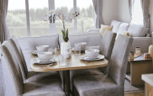 There’s plenty of space to relax in the Malton’s cosy lounge, whether you want to put your feet up in front of the telly or chill out with friends or family. Those big windows or optional patio doors are great for enjoying the views of your holiday park. And with comfy, freestanding furniture you can even rearrange it to suit you. There’s even a pull-out sofa bed as standard for when you have extra folk stopping over. The colour scheme is nice and calming too – cashmere furniture and pink cushions contrast beautifully with the grey carpet and oak highlights. The open-plan kitchen and living room make the most of the Malton’s space. There’s all the room you need to cook up a treat, with a cooker and fridge-freezer as standard, and space for an integrated microwave and dishwasher if you have better things to do than washing up. You also get a freestanding dining table and plush, upholstered chairs. That means you’ll eat in comfort, and you can shuffle things around to suit you. The bedroom is one of the most important rooms in your holiday home. It doesn’t need to be huge, but it does need to be comfortable. And it must use its space well. That’s exactly what the Malton does. Its main bedroom is big enough to be comfortable, and with some clever storage solutions you’ll have plenty of space for your clothes and bits and bobs too. If you opt for the 35’ x 12’ two-bed model, you’ll even get a walk-around wardrobe in the main bedroom.