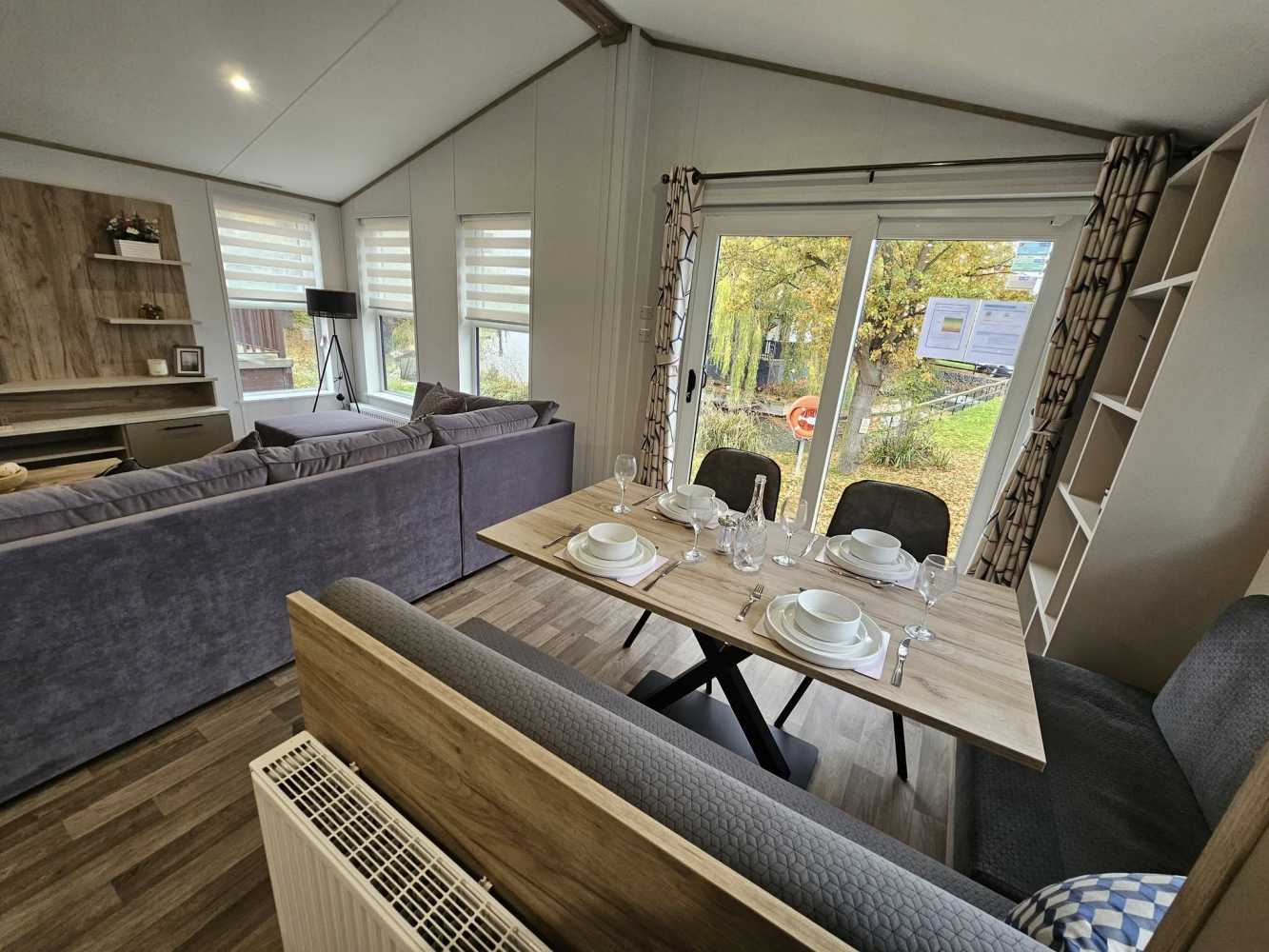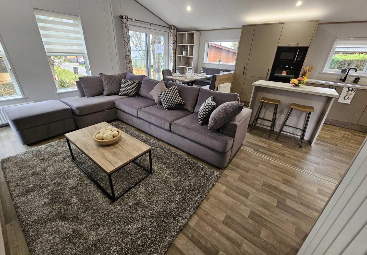 The 2026 Willerby Mapleton Lodge ❤️ ✨️ The Willerby Mapleton is located on one of our Lakeside plots, with exceptional views from your living area ✨️ The Mapleton luxury lodge is super modern and packed full of modern technology, like the massive media wall with ambient lighting. It’s like having your own personal cinema every time you visit. As soon as you set your eyes on it, the Mapleton screams luxury and quality. You can’t help but notice its stylish, modern Timberwolf CanExel exterior cladding with upgraded graphite UPVC windows and doors. Lounge - The centrepiece of the Mapleton’s lounge is the spectacular media wall. If your idea of a great night is enjoying the latest blockbuster on a massive telly, this is the luxury lodge for you. The atmospheric mood lighting and soft grey colour scheme, perfectly set off by oak-style laminate flooring. It’s like a New York luxury loft apartment but on your favourite holiday park. There’s plenty of storage space to keep all your bits and bobs. And the comfy, freestanding L-shaped sofa gives you lots of room to stretch out and relax. Kitchen dining area The luxury loft theme carries on into the open-plan kitchen dining area. There’s a big kitchen with all the worktop space you need, a gas oven and hob, an integrated microwave and a big fridge freezer. There’s an island with bar stools, too, so you can chat while you cook. Then there’s a good-sized freestanding dining table, with comfy chairs and bench seating for when you’re ready to sit down and enjoy your meal. It’s right by the patio doors too, so you can bask in natural light and let the outside in. Bedrooms Naturally, you get a luxurious king-size bed in the main bedroom. And of course, you get lots of storage, including space under the clever lift-up bed. There’s a big walk-in wardrobe, an en-suite bathroom and a mirrored dressing table with its own stool and storage. The other bedroom hasnt been skimped on, either. In the second bedroom, you get 3’ wide single beds for that extra bit of space. With space for a wall-mounted TV, and plenty of built-in storage and an open walk in wardrobe. • 2 Bed • 40x20ft • Residential Specification - BS3632 • Double Glazed • Central heating • Luxurious Corner Sofa (sofa-bed) with Co-Ordinating Footstool • Integrated washer/dryer, cooker, dishwasher and microwave • Kitchen Island with Two Bar Stools • Full Size Bath in Main Bathroom • En-Suite Shower Room • Front Sliding Doors • Coordinated Bedding Pack • Overhead attic storage • Dimmable spotlights throughout • Fully galvanised chassis • Upgraded Graphite Windows • Fully Furnished £130,000 - Including 2026 Site Fees. Viewings are highly recommended of this lodge, if you require any further information you can contact us on 07496359495 - immediate viewings available ❤️