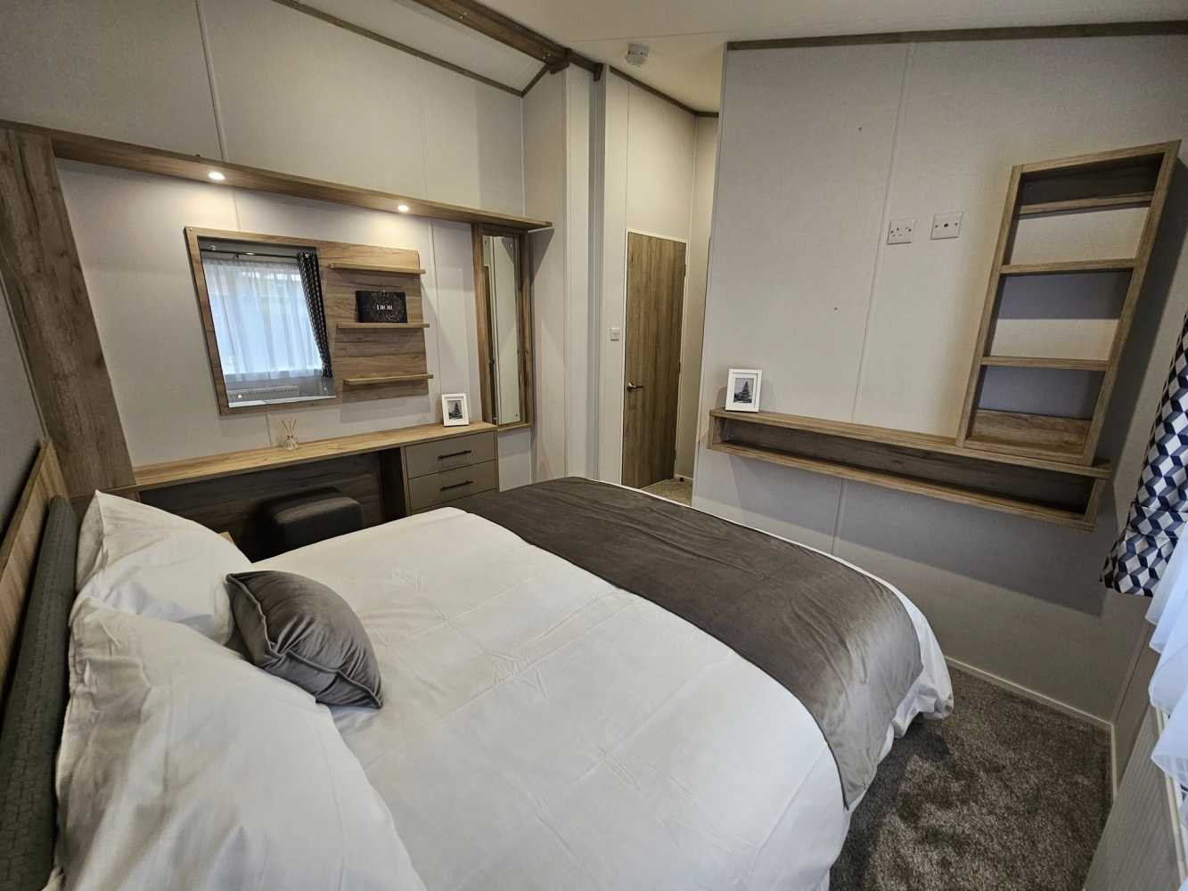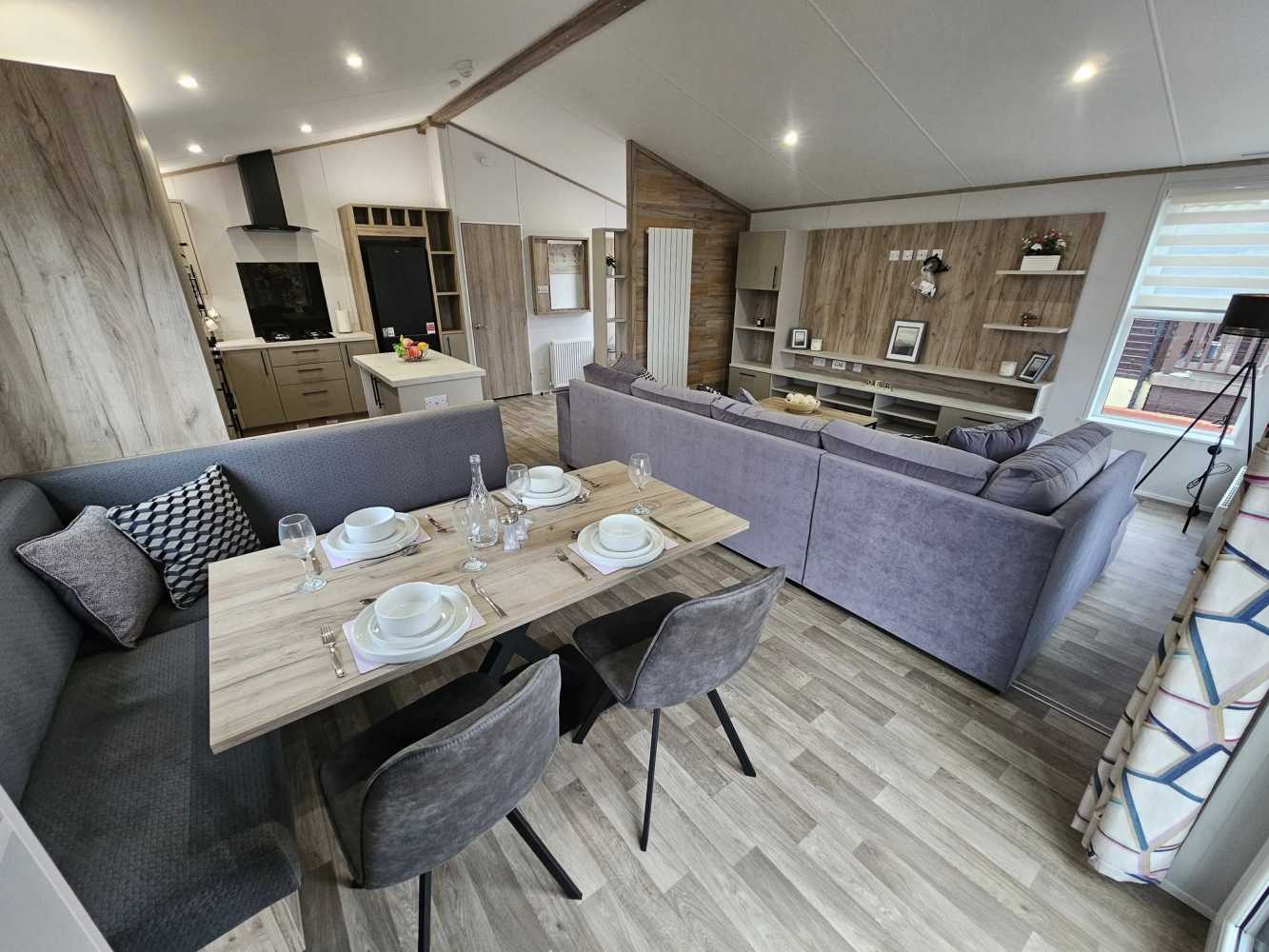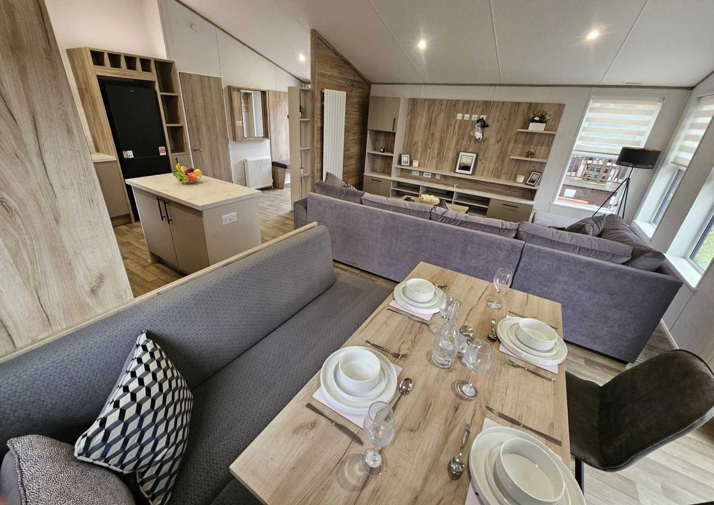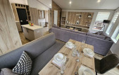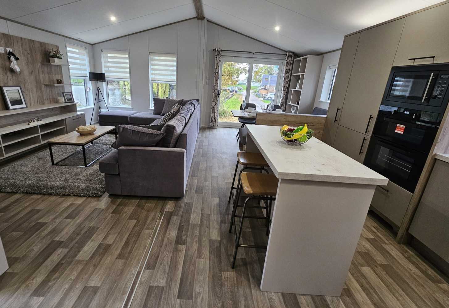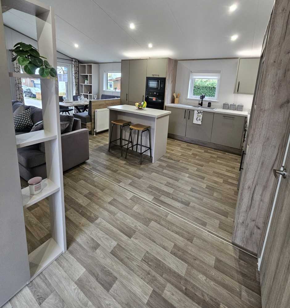The 2026 Willerby Mapleton Lodge ❤️ ✨️ The Willerby Mapleton is located on one of our Lakeside plots, with exceptional views from your living area ✨️ The Mapleton luxury lodge is super modern and packed full of modern technology, like the massive media wall with ambient lighting. It’s like having your own personal cinema every time you visit. As soon as you set your eyes on it, the Mapleton screams luxury and quality. You can’t help but notice its stylish, modern Timberwolf CanExel exterior cladding with upgraded graphite UPVC windows and doors. Lounge - The centrepiece of the Mapleton’s lounge is the spectacular media wall. If your idea of a great night is enjoying the latest blockbuster on a massive telly, this is the luxury lodge for you. The atmospheric mood lighting and soft grey colour scheme, perfectly set off by oak-style laminate flooring. It’s like a New York luxury loft apartment but on your favourite holiday park. There’s plenty of storage space to keep all your bits and bobs. And the comfy, freestanding L-shaped sofa gives you lots of room to stretch out and relax. Kitchen dining area The luxury loft theme carries on into the open-plan kitchen dining area. There’s a big kitchen with all the worktop space you need, a gas oven and hob, an integrated microwave and a big fridge freezer. There’s an island with bar stools, too, so you can chat while you cook. Then there’s a good-sized freestanding dining table, with comfy chairs and bench seating for when you’re ready to sit down and enjoy your meal. It’s right by the patio doors too, so you can bask in natural light and let the outside in. Bedrooms Naturally, you get a luxurious king-size bed in the main bedroom. And of course, you get lots of storage, including space under the clever lift-up bed. There’s a big walk-in wardrobe, an en-suite bathroom and a mirrored dressing table with its own stool and storage. The other bedroom hasnt been skimped on, either. In the second bedroom, you get 3’ wide single beds for that extra bit of space. With space for a wall-mounted TV, and plenty of built-in storage and an open walk in wardrobe. • 2 Bed • 40x20ft • Residential Specification - BS3632 • Double Glazed • Central heating • Luxurious Corner Sofa (sofa-bed) with Co-Ordinating Footstool • Integrated washer/dryer, cooker, dishwasher and microwave • Kitchen Island with Two Bar Stools • Full Size Bath in Main Bathroom • En-Suite Shower Room • Front Sliding Doors • Coordinated Bedding Pack • Overhead attic storage • Dimmable spotlights throughout • Fully galvanised chassis • Upgraded Graphite Windows • Fully Furnished £130,000 - Including 2026 Site Fees. Viewings are highly recommended of this lodge, if you require any further information you can contact us on 07496359495 - immediate viewings available ❤️