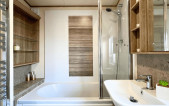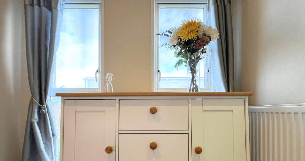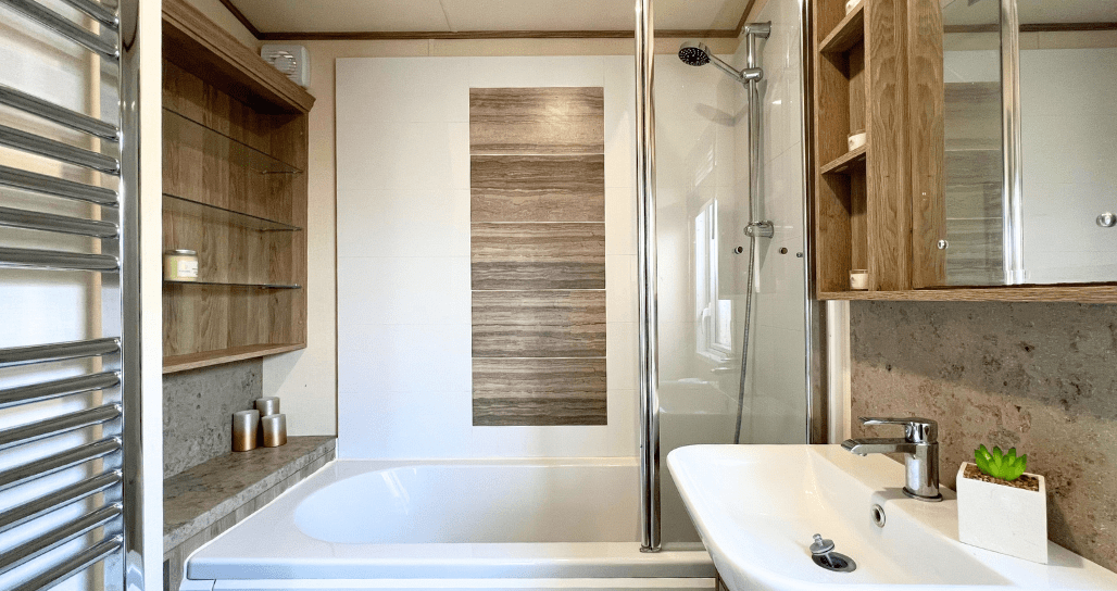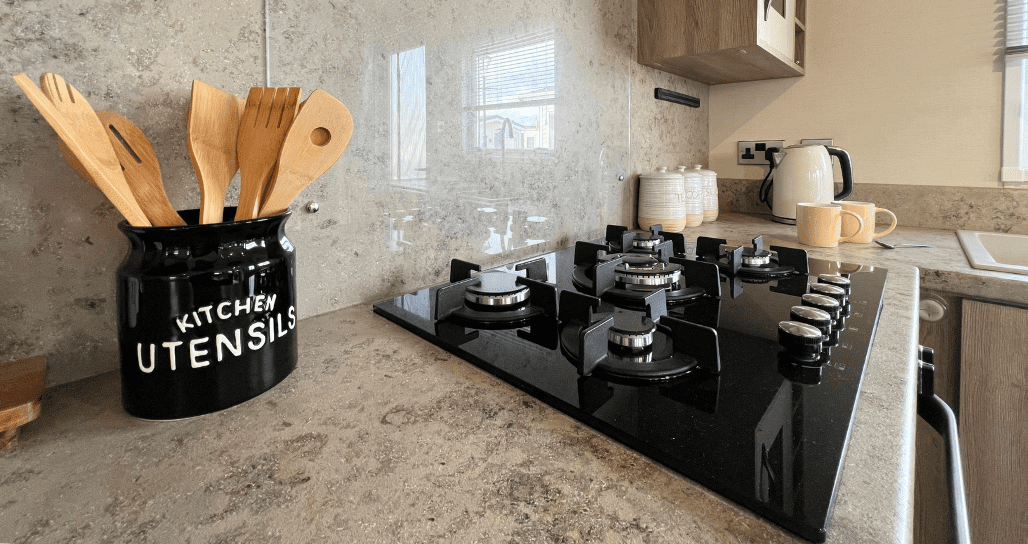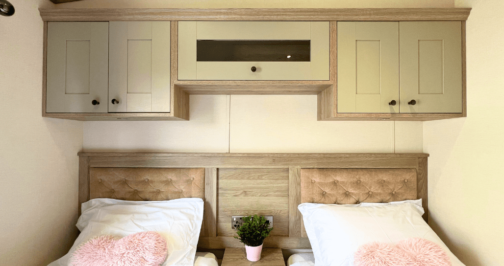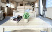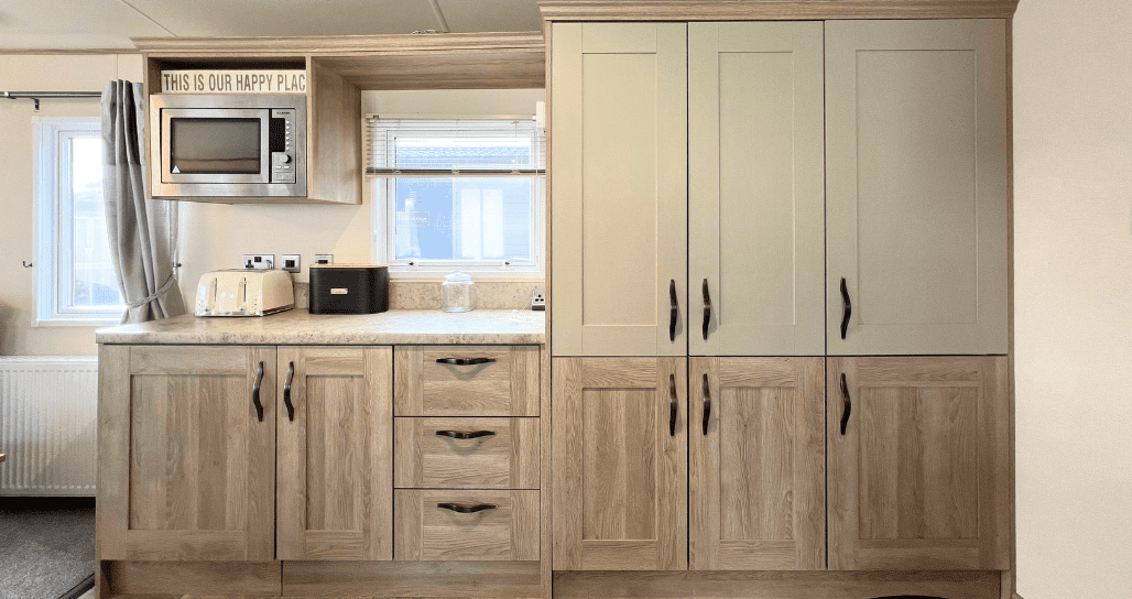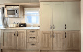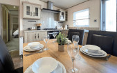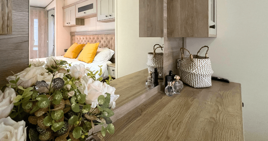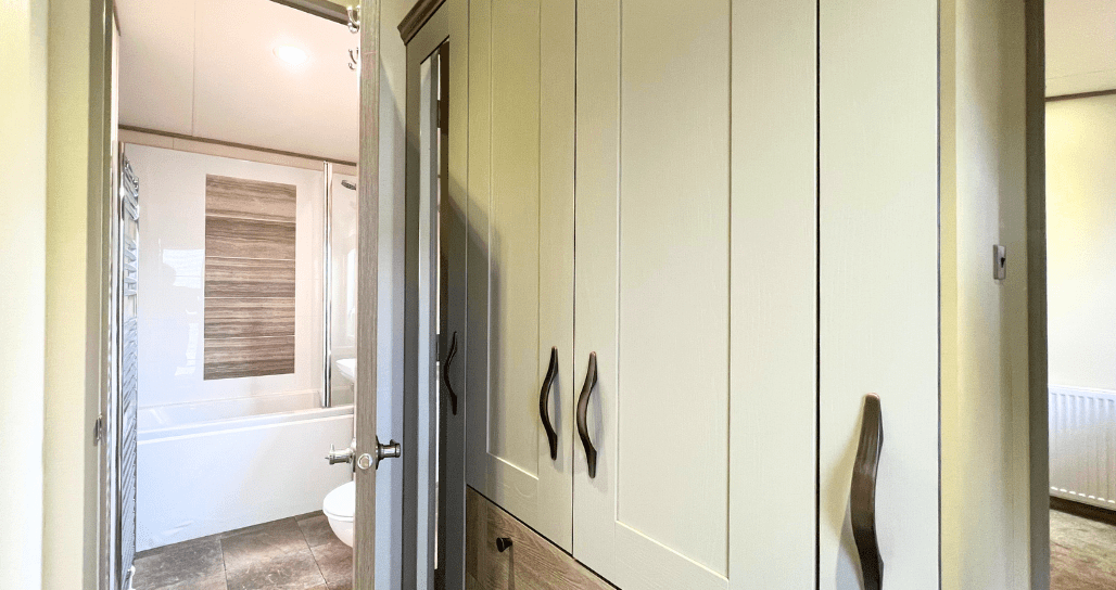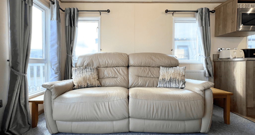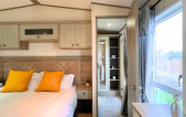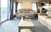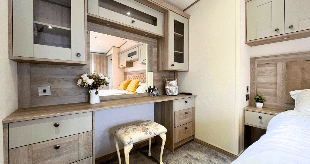 Step inside the ABI Beaumont static caravan and experience true elegance, space, and luxury. Designed as one of ABI’s flagship holiday homes, the Beaumont combines high-quality craftsmanship with thoughtful touches that make it stand out as the ultimate in holiday home ownership. This luxury caravan is beautifully open-plan, starting with a spacious kitchen perfect for cooking, dining, and entertaining. Finished in light lime-washed wood, the kitchen offers generous storage, a modern oven and hob, built-in appliances, and a handy pantry. A matching dining set with four black faux-leather chairs creates a welcoming space for family meals or hosting guests. Why cook when you can relax? Guy’s Bar & Restaurant has had a fresh makeover in the newly refurbished The Country Club, Click here to come see what’s new and check out the menu! The open-plan layout flows into a bright, spacious living area. Here you’ll find a two leather sofas, freestanding wood furniture, and a striking feature fireplace. Elegant drop lighting, a bold wall mirror, and silver curtains on pewter rails add a sophisticated touch. This living room offers the perfect place to relax with family or entertain friends in style. The ABI Beaumont caravan boasts two generously sized bedrooms, comfortably sleeping four. The master suite is a true highlight, featuring a central bed with a statement button-back headboard, bedside tables, overhead storage, and a dedicated dressing area. Beyond this, a walk-in wardrobe leads into a stylish en-suite with a full-sized bath and shower, a rare luxury in static caravans. The second bedroom is designed as a versatile twin, complete with two single beds, upholstered headboards, ample storage, and a dressing area with mirror. A contemporary family bathroom with a modern shower and sleek shelving completes the layout. With its spacious interiors, high-end finishes, and thoughtful design, it’s the perfect choice for those who want more than just a static caravan, they want a lifestyle. The ABI Beaumont: luxury holiday living, redefined.