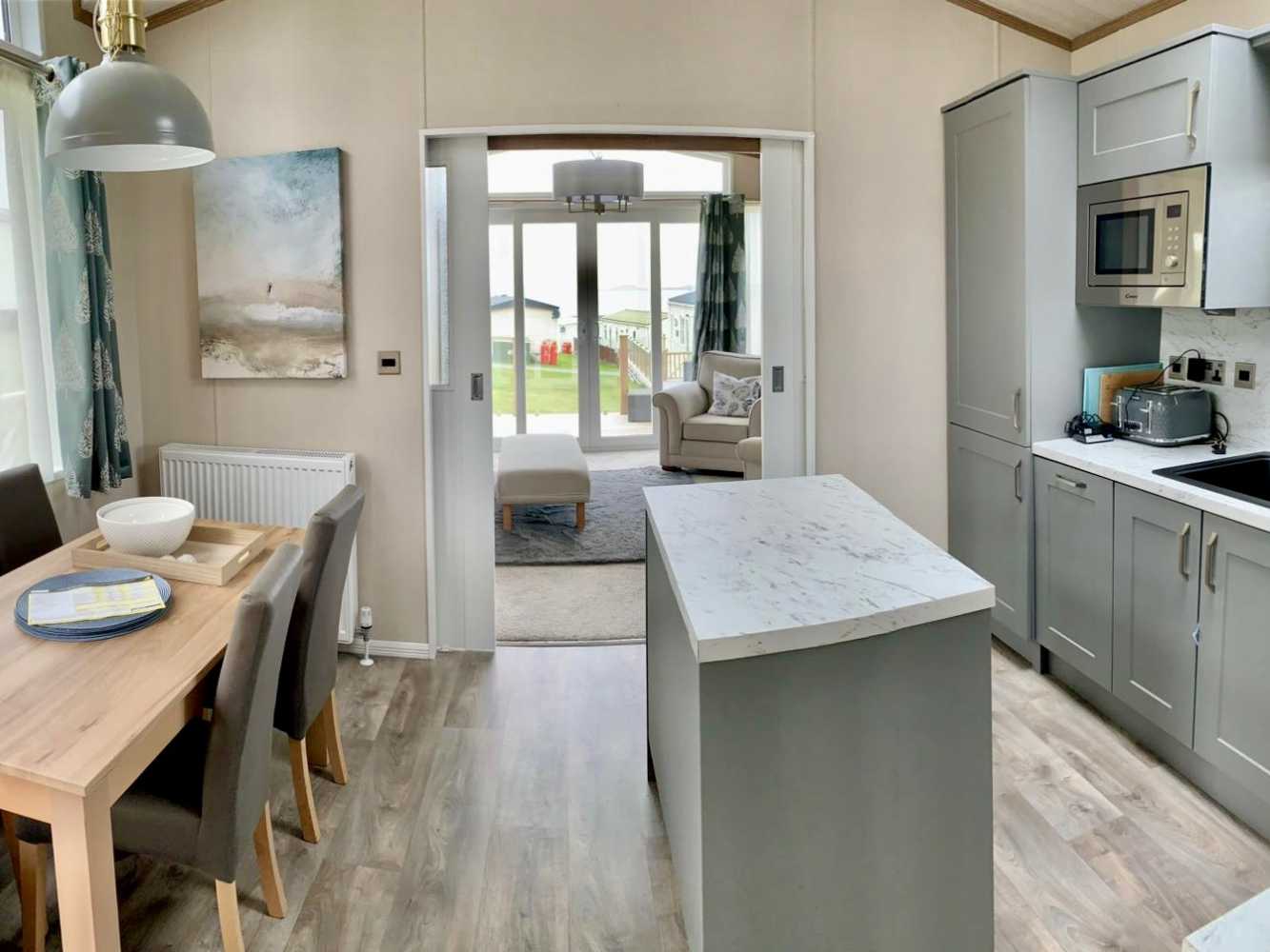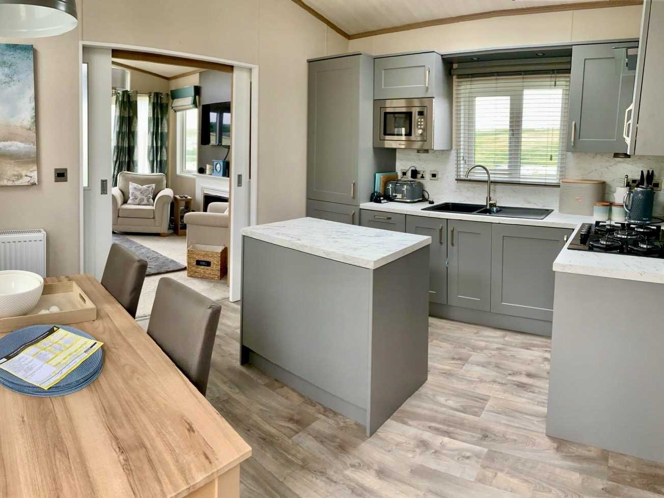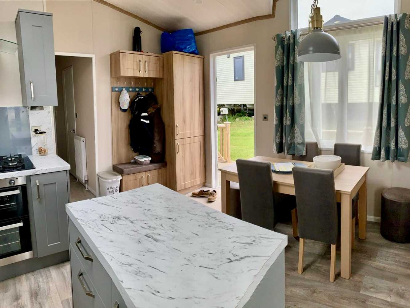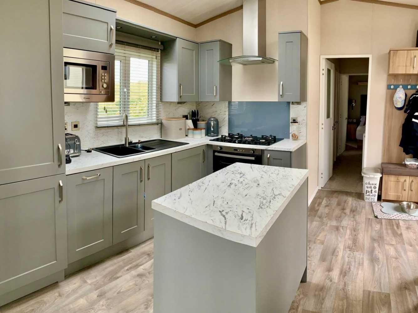 The Langtonās 8 foot high ceiling brings an abundance of light into this closed off home coupled with the dormer window over the dining area. Grey accent walls provide contrast to the oak colours throughout, whilst the tan and russet shades lift the mood by adding warmth. The entrance vestibule has a louvre partition which screens off the dining area and provides a more intimate feel.