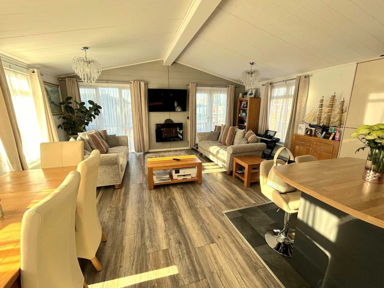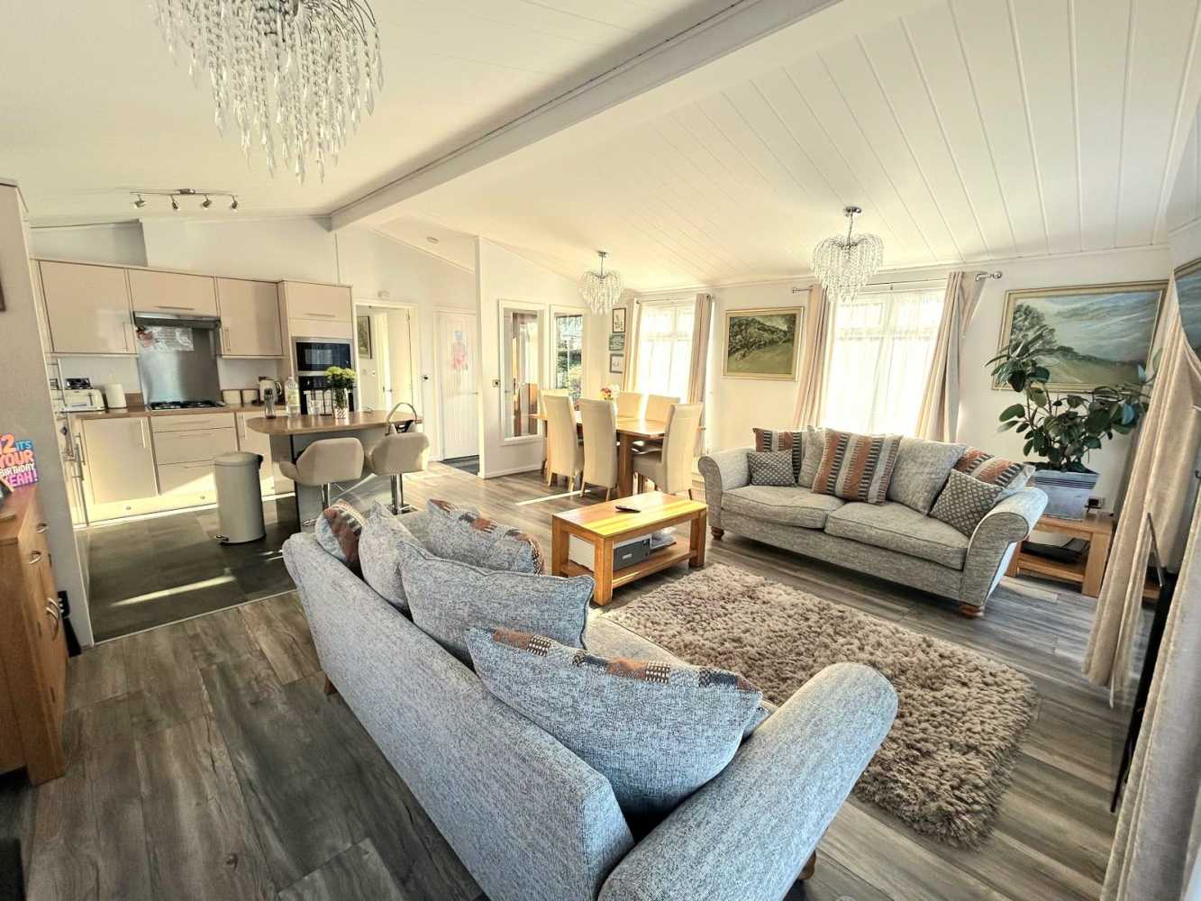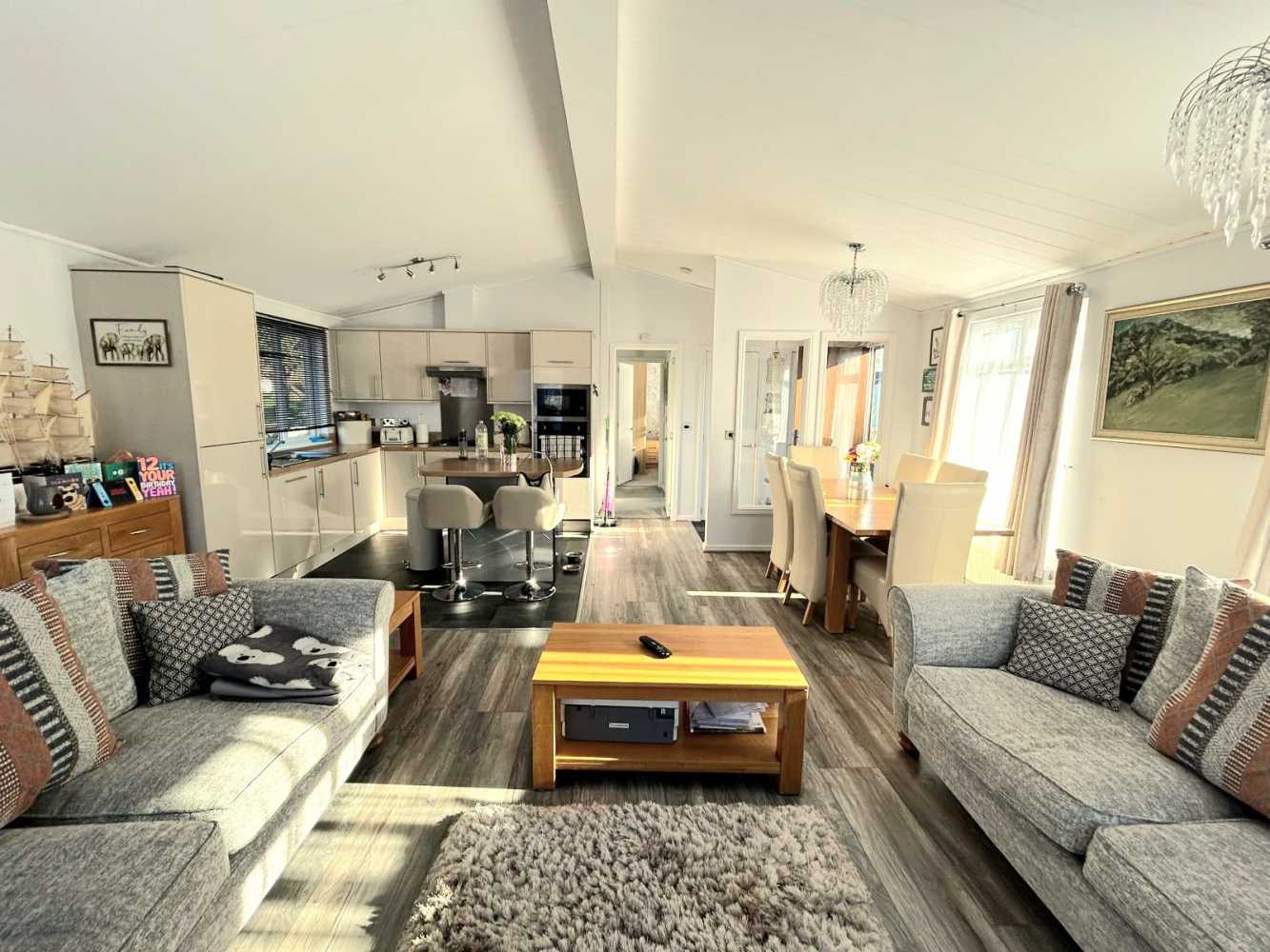 2017 Prestige Buckland Lodge ???? Sited on one of our stunning lake plots ???? The Prestige Buckland Lodge provides economical living without compromising on living space and style. When you enter the lodge their is spacious hallway which boasts a large cloakroom cupboard handy for coats and household appliances. The open plan living area of the Buckland makes a real statement and brings that real home from home feeling. With brand new sofas, you can really relax in a room full of unstated luxury. The kitchen is modern and sleek with glossy cabinets and high spec built-in appliances such as oven, dish-washer, washing machine, microwave and full size fridge-freezer! It comes with a breakfast bar with elegant leather stools and no expense spared when it comes to the décor. You’ll feel instantly at home from the moment you step inside. You will find two double bedrooms in the Buckland Lodge both have a simplistic beauty and subtle soft furnishings. The wow-factor is the master bedroom with a large walk-in wardrobe and en-suite with a shower. The family bathroom benefits from a full-sized bath! The vaulted roof means high ceilings and extra windows throughout come as standard, combining this with the French doors allowing in the beautiful natural light throughout the day. - 40x20ft - 2 Double Bedrooms - 2 Bathrooms - Residential Specification - Integrated appliances - Walk In Wardrobe - Decking - Garden - Driveway - Double glazed - Central heating We are a 11 MONTH HOLIDAY PARK - Onsite we have to offer you - - Heated Indoor Pool - 2 Gyms, Sauna and Spa - Clubhouse with bar - Function Room - Lakes Includes 2025 Site Fees! £144,995 or nearest offers! Please contact us on 07496359495 for arranging a viewing