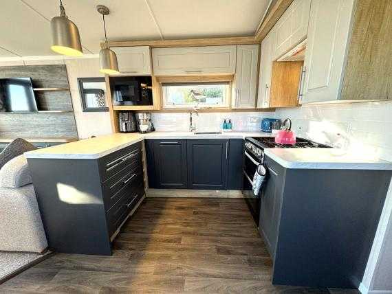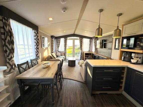 ***PRE-OWNED*** We are selling this holiday caravan on behalf of one of our owners, it is sited and connected all ready to go on Pitch 140. Well-appointed and stylish, this Pre-Owned Swift Margaux has an elegant and welcoming design conjured by the lovely soft furnishing scheme. This holiday caravan provides the perfect space to be enjoyed by families and couples alike, while being your seaside sanctuary to escape the hustle and bustle of day-to-day life. The light and bright lounge has a coffee table enclosing two upholstered stools; feature fireplace with contemporary electric fire; wall mounted TV point; a freestanding two-piece suite with a fold-out occasional bed - perfect for when you have guests visiting; and French doors to the front, leading to the glass front deck area – the ideal outdoor space to enjoy those sunny morning coffees, lunchtime BBQ’s, and stunning evening sunsets. The modern kitchen has plenty of worktop and cupboard space and comes fully equipped with gas cooker with oven, grill, hob, and overhead extractor hood; an integrated microwave; integrated fridge freezer; integrated dishwasher; white composite sink with drainer; and a free-standing dining table with four chairs. Both bedrooms have ample wardrobe space and are lovely light and bright rooms. The master bedroom benefits from two bedside cabinets, upholstered headboard, two built-in wardrobes, a large dressing table with mirror and stool, wall-mounted TV point, and an en-suite comprising WC and wash hand basin. The twin bedroom offers a built-in wardrobe, over-bed storage, one bedside table, wall-mounted TV point, and upholstered headboard. The family shower room comprises shower cubicle with modern tile-effect backing, WC, wash hand basin, extractor fan, and heated towel radiator. This holiday caravan is sited and sold on Pitch 140 and includes the existing Timber-Built Extended Glass Front Deck, the existing TV satellite dish, the existing timber-built storage shed, Master Bedroom TV, a double canoe with paddles and trolley, and more! A full inventory list is available on request. Viewing, by appointment, is highly recommended, and can be arranged by contacting our Reception on 01557 814351.