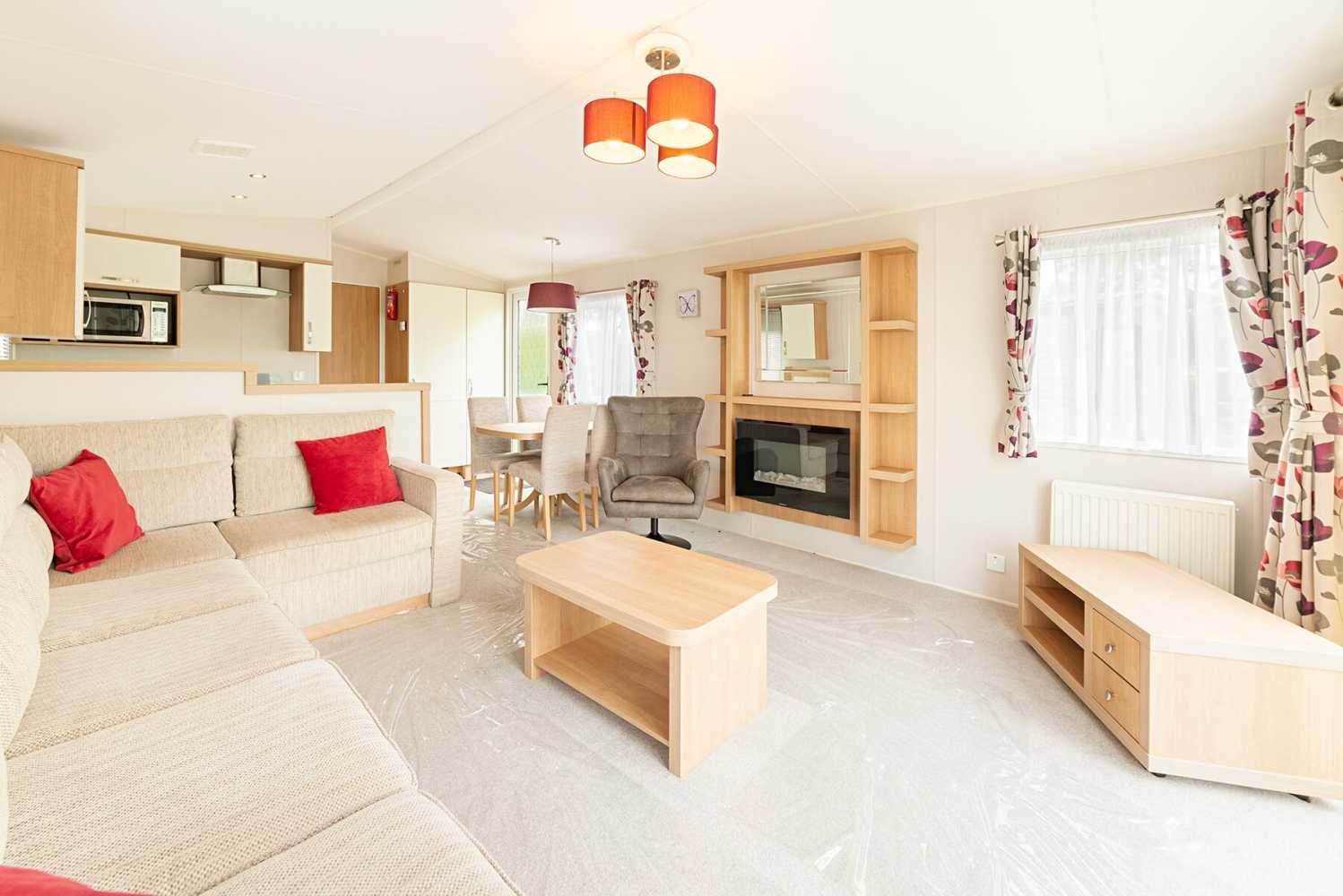 This pre-owned Willerby Avonmore could be a great starter home to ease you into your holiday home ownership journey. With side decking and a spacious feel, there’s bags of storage in a beautifully planned space. You enter the Willerby Avonmore through the side entrance and you’re straight into the kitchen/dining space via the side decking. The kitchen is light and bright with integrated fridge/freezer and built in microwave. The dining table comfortably sits four and is set in front of a generous window to bathe your food in light! The lounge is a real feature. With huge picture windows at the far end, there’s plenty of light on this southeast facing plot. A large corner sofa seats at least 5 and also doubles as a sofa bed for extra guest space. The family shower room is sleek with a simple white loo and wash basin and double shower cubicle. There’s also plenty of storage. The twin bedroom has storage over the beds and a slimline wardrobe whilst the master bedroom has an ensuite WC, fitted dressing table and lots of incidental storage. All in all, the Willerby Avonmore offers everything you need in a holiday home at a great price.