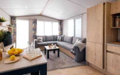 No pitch fees to pay until 2027! With warm wooden hues and neutral furnishings throughout, the living space is large enough to invite your neighbours round for a morning coffee or an evening of entertaining. The hardwearing sofa is easy to keep clean - and it’s the perfect place to relax in front of the feature TV unit. All you have to do is decide who gets control of the remote. The tropical accent fabrics make you feel like you're in sunnier climes - pair with some simple picture frames or a statement candle and it'll feel like home in no time. The kitchen lends itself to busy family mealtimes, with plenty of worktop space to whip up a full English or a brunchtime snack. We've kept it neutral so you can add your own finishing touches, like a chopping board or knife block. The modern herringbone flooring is easy to clean and we've included a fridge/freezer as standard to keep your homemade lemonade (or bottles of wine) cool. The dining table fits the whole family - add some fresh flowers for a pop of colour or bring your finest tableware to impress your guests. The bathroom offers plenty of natural light and the concrete-effect wet wall is bang on trend so you can shower in style. The master bedroom offers the ultimate in relaxation with a showstopping headboard and denim blue feature wall. The dim out curtains are perfect for a good night's sleep and the dressing area is perfect for getting ready for the day (or night) ahead.