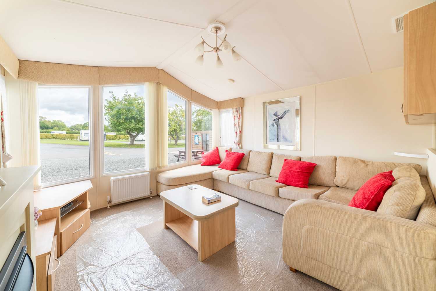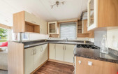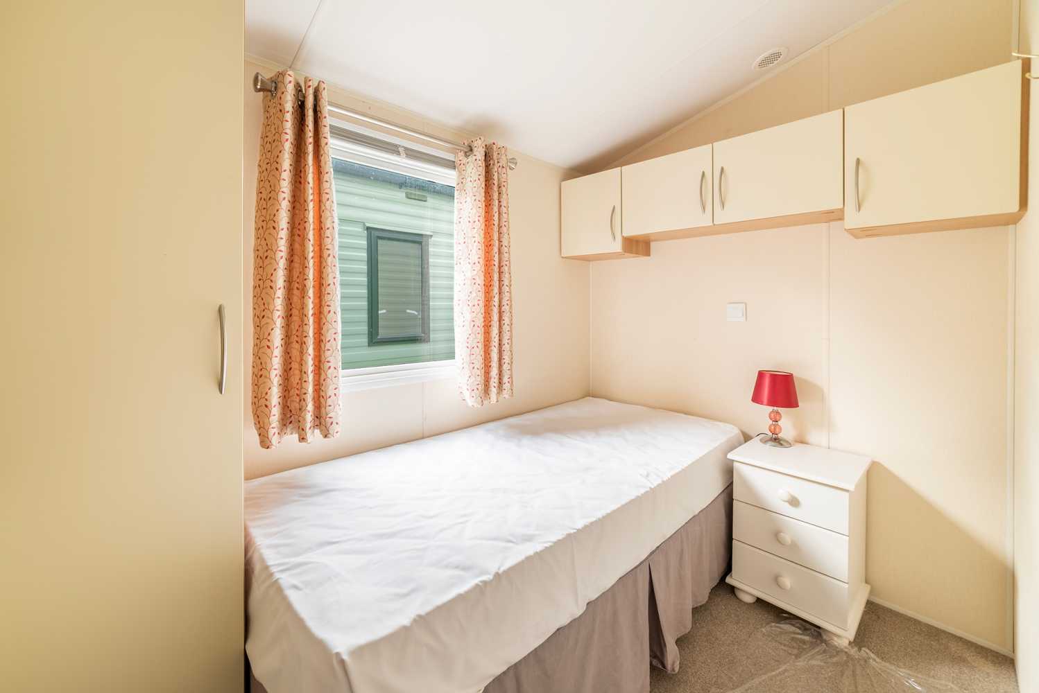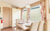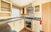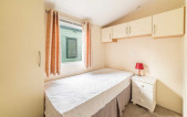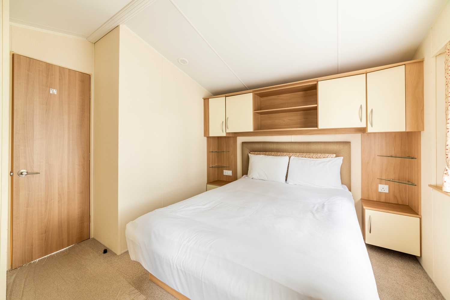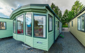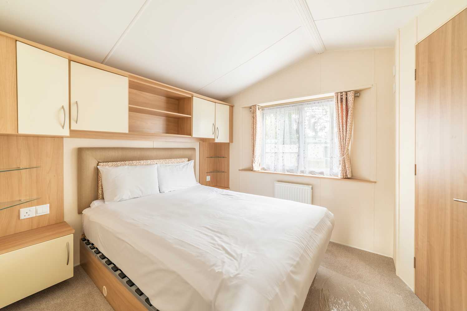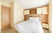 This Willerby Newhampton is a fantastic entry level holiday home currently on our sales ground at Arrow Bank but with a choice of 2 plots on park if you become the lucky owner. Once you enter the Newhampton from the door at the side that brings you directly into the kitchen, you won’t fail to notice the level of light in the open plan sitting room. A key feature of the Newhampton are the large front windows that stretch the entire width of the home – bringing in vast amounts of light throughout the living area. There’s a large corner sofa that doubles as sofa bed, plenty of room for a big TV and a dining table with upholstered chairs that seats 4. The horseshoe kitchen has bags of cupboard space above and below the granite effect worktops. There’s an integral fridge freezer and a useful full-length utility cupboard. The kitchen benefits from the light flooding in from the entrance door and double aspect windows. The 2 bedrooms are served by a generous family shower room, whilst the master bedroom has an en-suite WC. The 2nd bedroom has plenty of cupboard space and a wardrobe. The master bedroom is generous with cupboards over the bed and drawer units to both sides. There are mirror fronted wardrobes with drawers under to ensure you’ll never be short of storage.