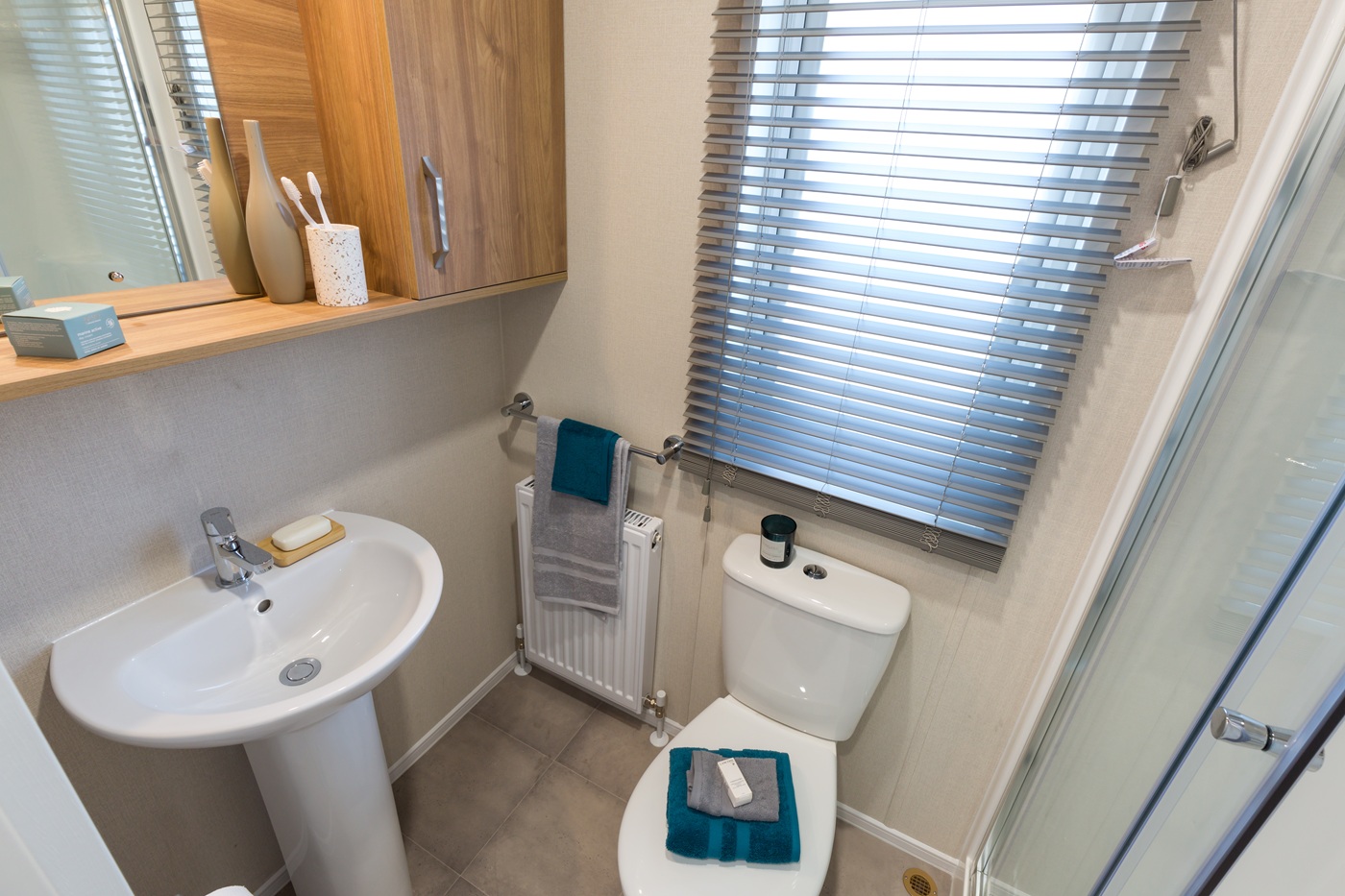 Marlow has the most models for a single unit within the Pemberton range. There are two 12ft models (one of which has the option for a side patio) and two 13ft models which are both 40ft (one of which is a 3 bed). This popular layout is open plan with a central dining position. The sleek low level furniture in the lounge and chunky shelving is minimalistic in style creating a modern look