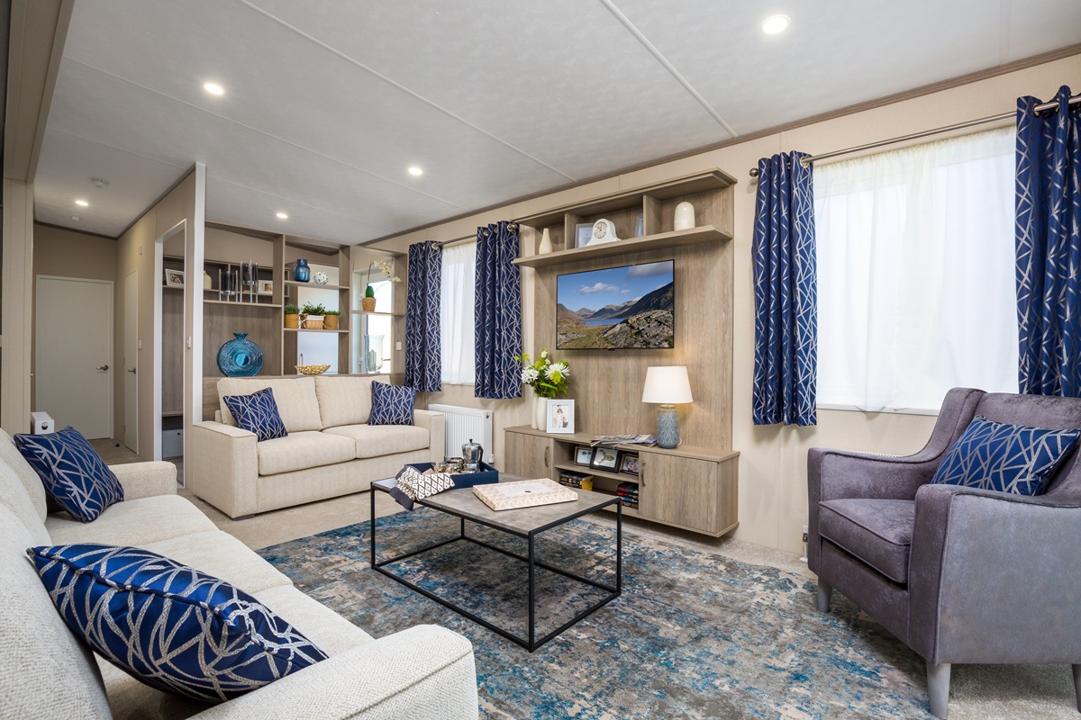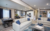 The Skydale is an impressive new addition to the Pemberton range of lodges and is brimming with character and charm. This 40 x 20 model is fundamentally an open plan home with each social space flowing seamlessly into the next. A display unit creates a screen between the side entrance and the spacious lounge. The U shaped kitchen has plenty of room for food preparation and the breakfast bar gives diners a more casual option for meal times.