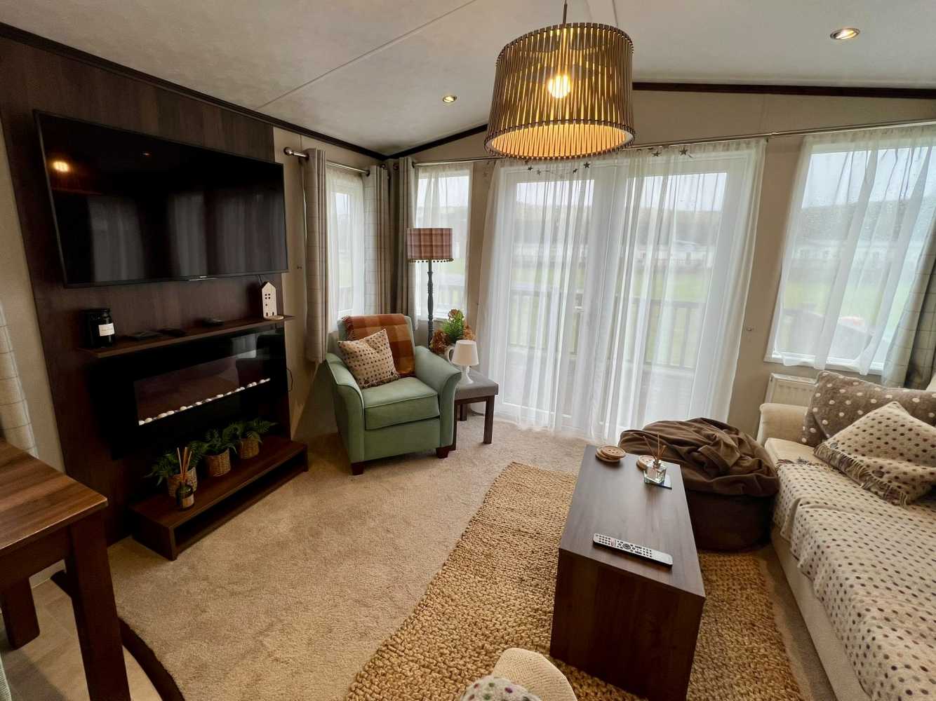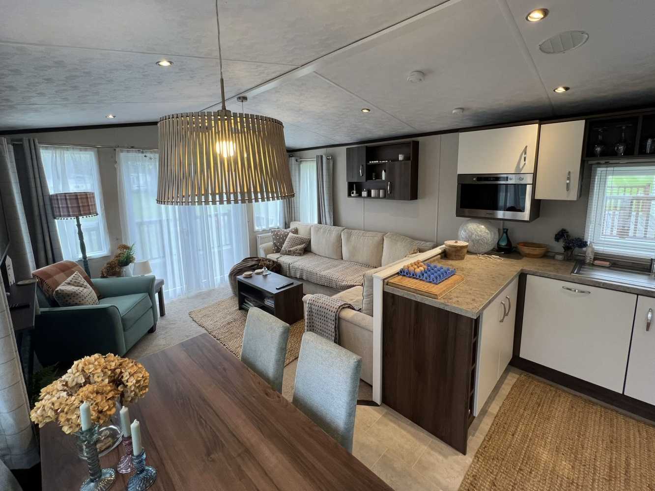 This fantastic Pemberton Avon is for sale on Plot 60 at Newgale Coast Holiday Park. Quite literally a stones throw away from one of Pembrokeshire’s most loved locations, Newgale Beach. You really couldn’t get any closer to the almost 2 mile blue flag beach. The Avon makes the perfect base for exploring the beautiful Pembrokeshire Coast and also a great hideaway for those weekends you just need to escape from the routine of life. You’ll find that this holiday home is very spacious a light, making the perfect space for all the family to enjoy. The open plan layout is great for getting everyone together for meal times and with the comfy L shape sofa and accent chair in the living room there’s space for everyone to chill out and watch TV and make the most of the electric fire place of an evening. This holiday home also features beautiful front facing french doors that lead out onto the wooden decking, the best spot to soak up the sun, watch sunsets and enjoy BBQ’s. This high specification caravan benefits from its fully residential specification 3632 with extra insulation and is also double glazed and central heated. This holiday home is in a superb, like new condition and has been well looked after in its few years of ownership. We couldn’t recommend enough booking a viewing appointment to come and see it for yourself! Our favourite features: -Open plan and spacious lounge / kitchen -Integrated fridge / freezer -Dishwasher -Built-in Microwave -Electric fire place and wall mounted TV -Ensuite in master bedroom