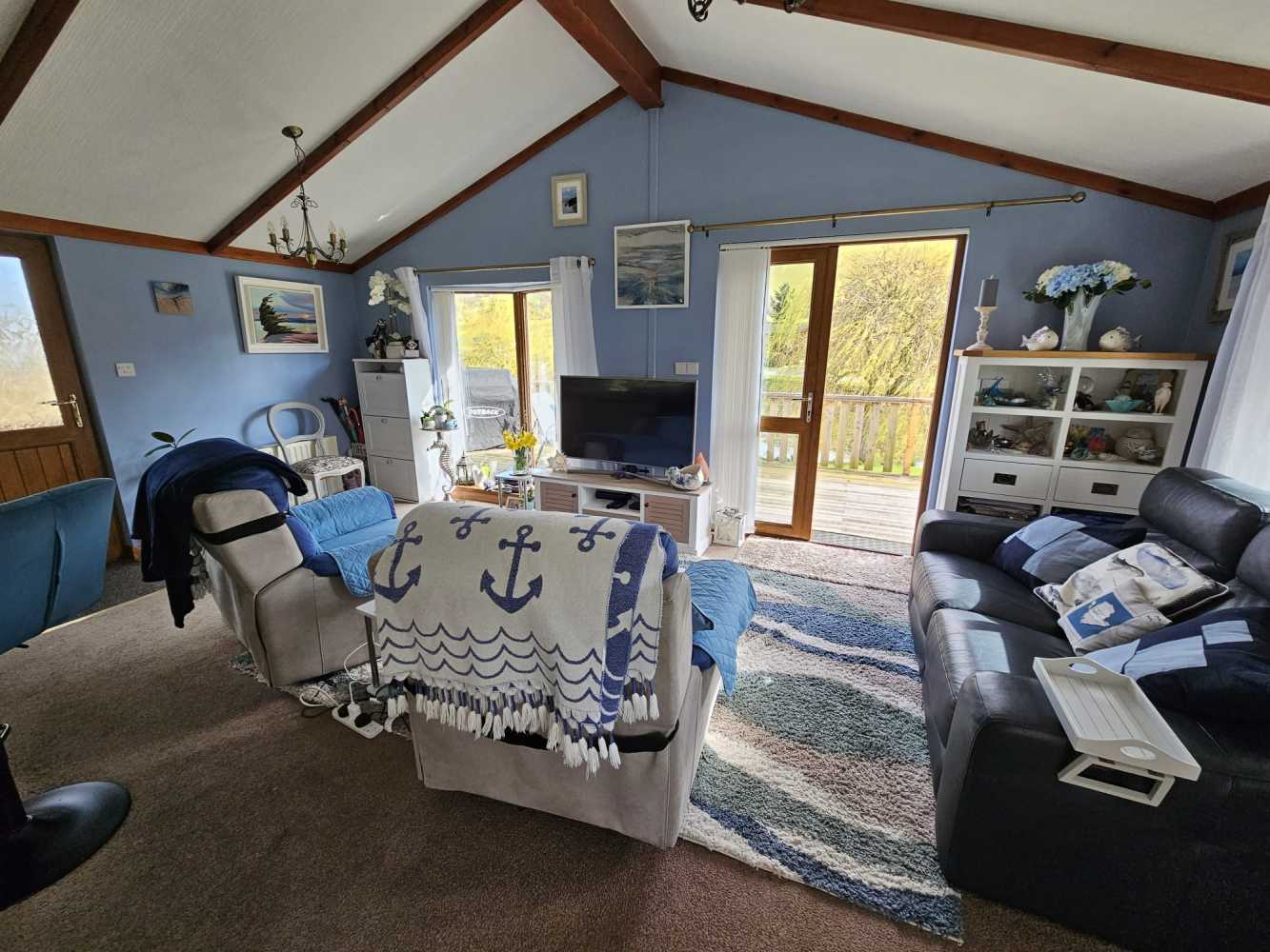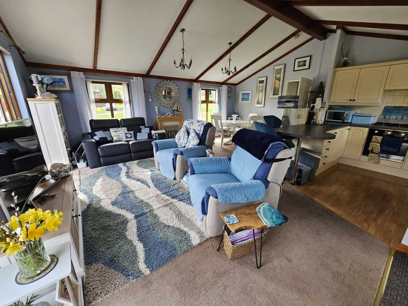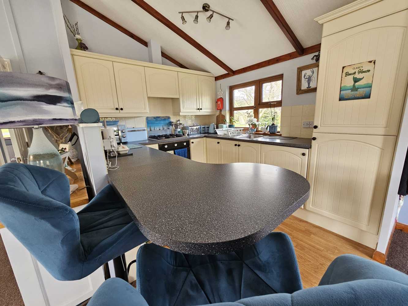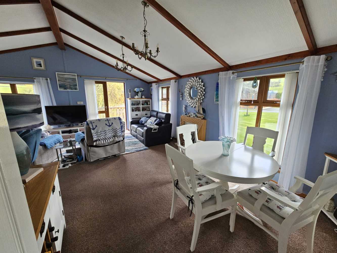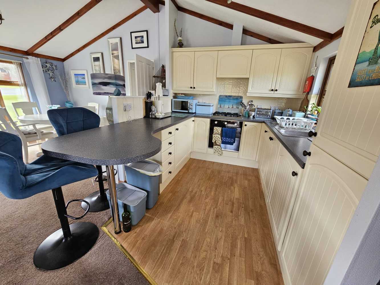 This Wessex Milbourne Lodge is ideally located next to our serene wildlife pool, providing you with the perfect opportunity to immerse yourself in nature while relaxing on your spacious decking. The open plan living area boasts a comfortable 2 seater electric recliner leather sofa, a stylish 2 seater sofa, TV cabinet, sideboard, display unit, and shoe storage cabinet. The dining area features an extending circular table with 4 chairs, perfect for entertaining guests. The well-appointed kitchen includes integrated fridge/freezer, washing machine, ample storage space, gas oven, and a 4-burner hob. The extended countertop doubles as a breakfast bar with 2 adjustable bar chairs. The master double bedroom offers fitted wardrobes, a 3-drawer chest of drawers, and an en-suite shower, WC, and hand basin. The second double bedroom includes a double wardrobe for added storage convenience. Relax and unwind in the family bathroom, complete with a bath, over-bath shower, WC, and hand basin. The highlight of this lodge is the 6-seater hot tub set into the front decking, professionally serviced and maintained for your enjoyment. Completing this brilliant package is a patio table with 6 chairs, included in the sale. Don’t miss the opportunity to make this stunning lodge your own retreat in the heart of nature.